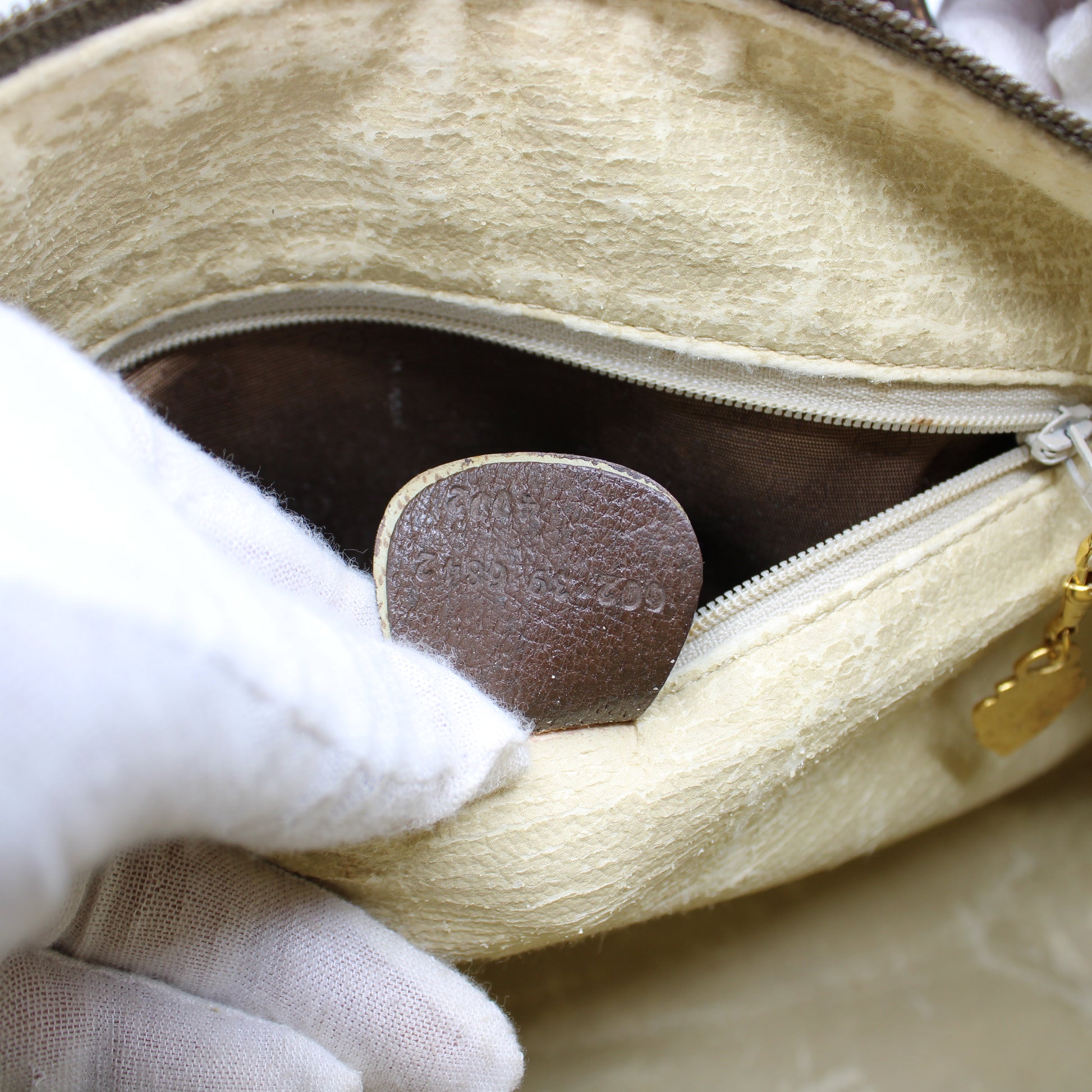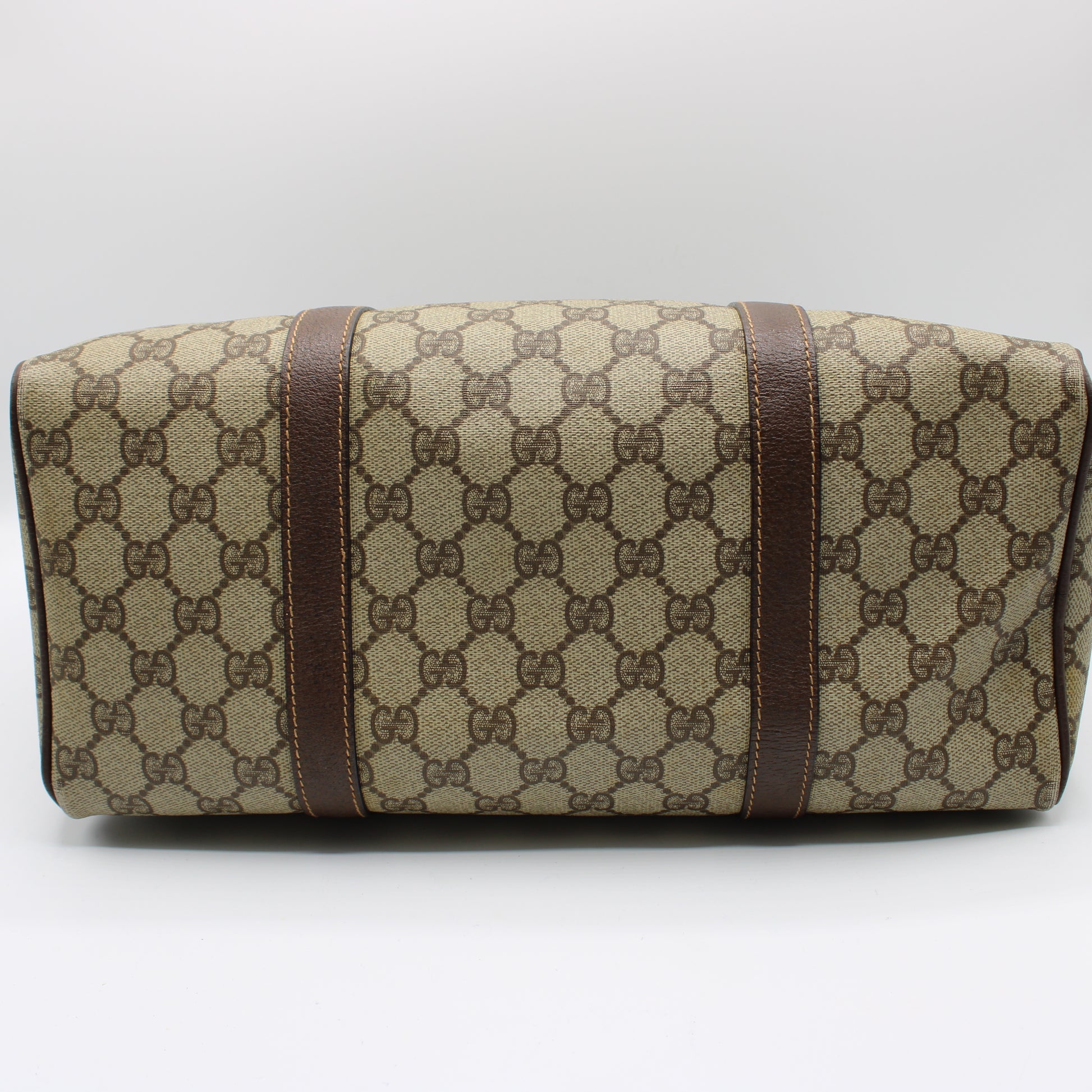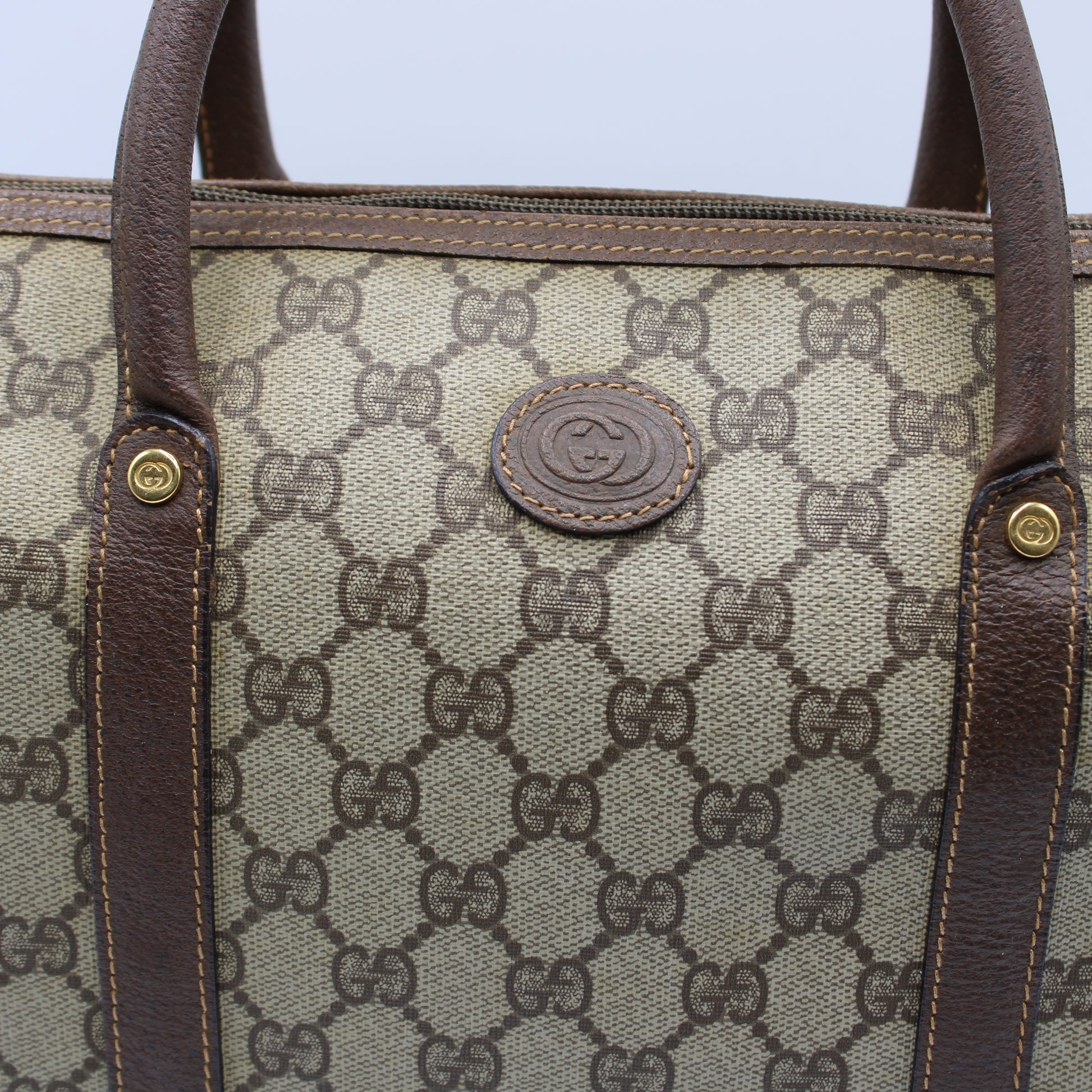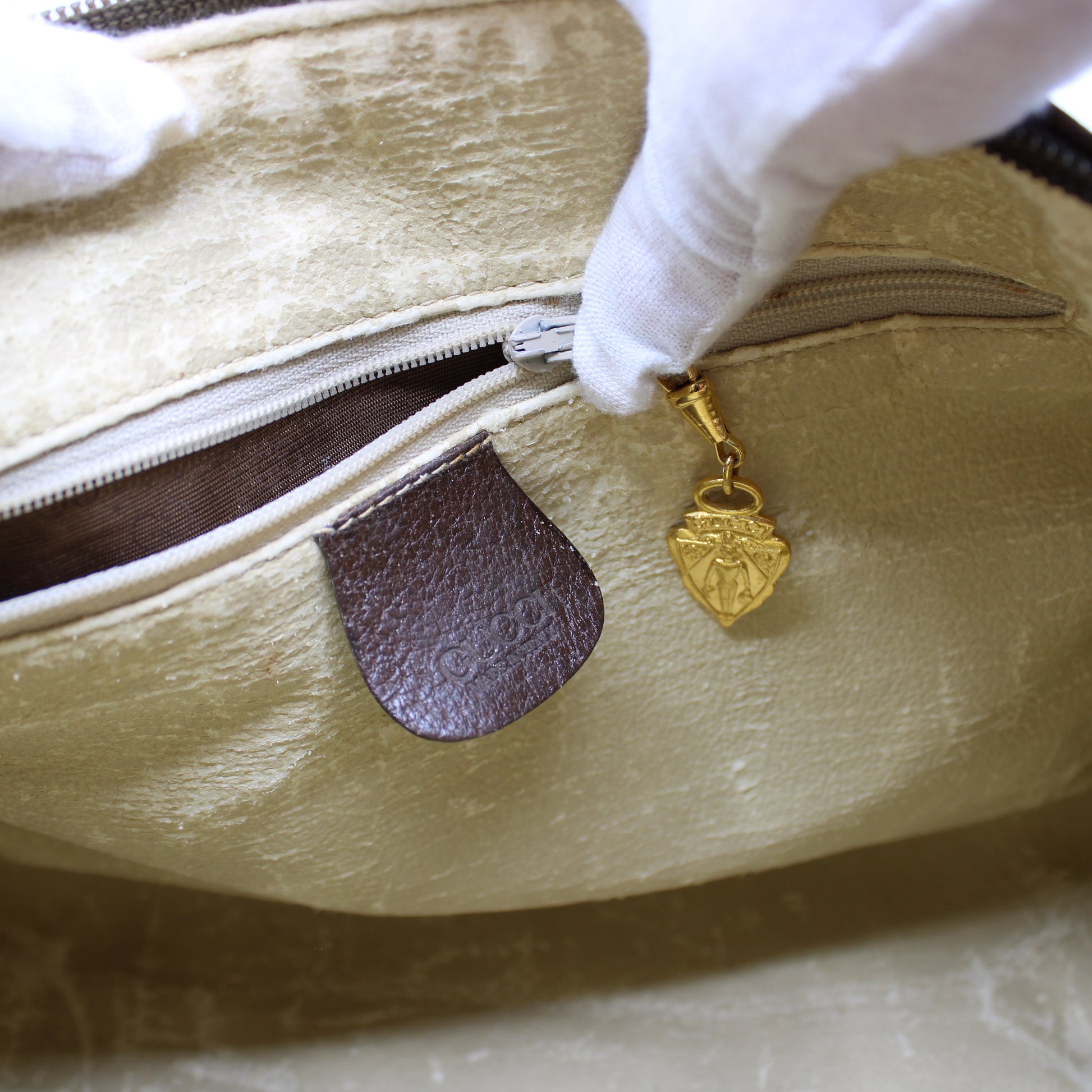 This bag is in very good condition, with minor wear visible on the lining. The wear inside is a natural result of its vintage nature and does not detract from its overall beauty or functionality. The exterior canvas remains in excellent shape, maintaining the signature Gucci elegance. Gold-tone hardware, including zippers and button accents, adds a touch of luxury to this already exquisite piece.