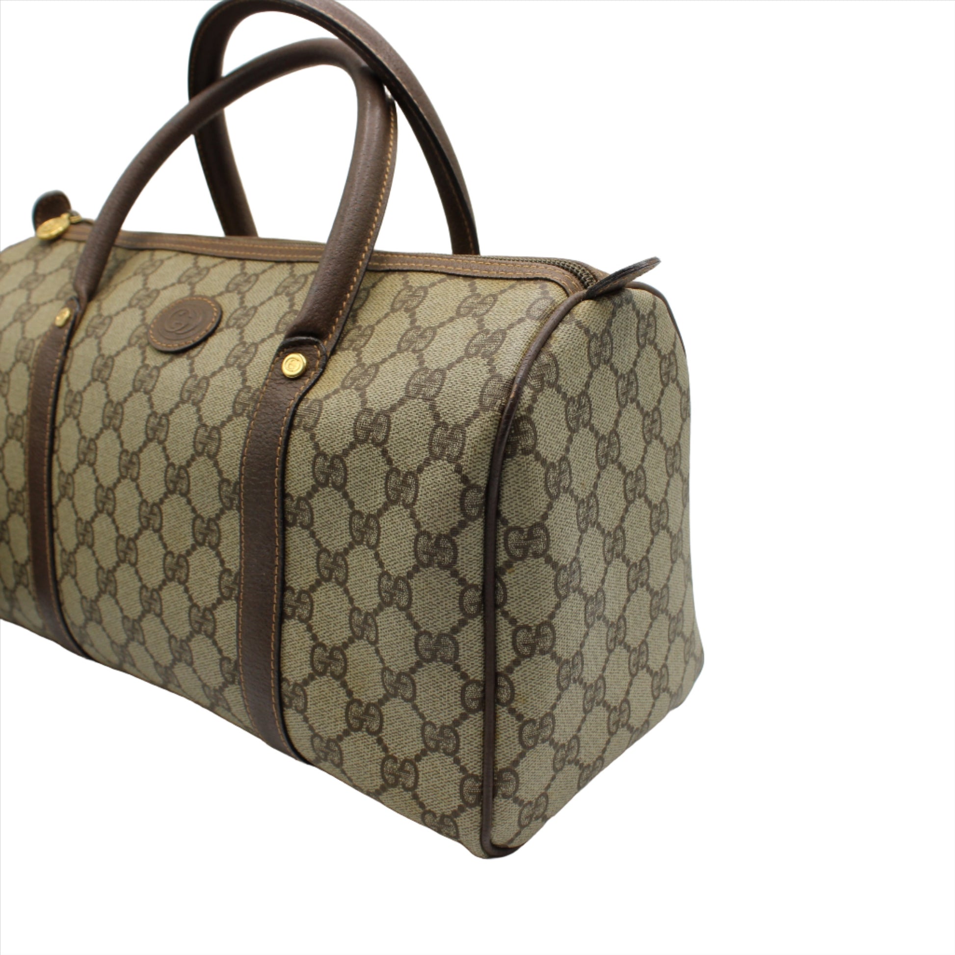Stefany Bags Shoes and More proudly presents this authentic Gucci Ophidia GG Canvas and Leather Boston Bag, a classic piece from the luxury brand's collection. This sophisticated handbag features the iconic GG monogram pattern on a durable canvas, complemented by rich brown leather trim and handles. The bag's design is both timeless and versatile, making it a perfect accessory for any wardrobe. Its spacious interior ensures practicality, while the sturdy construction offers long-lasting use.