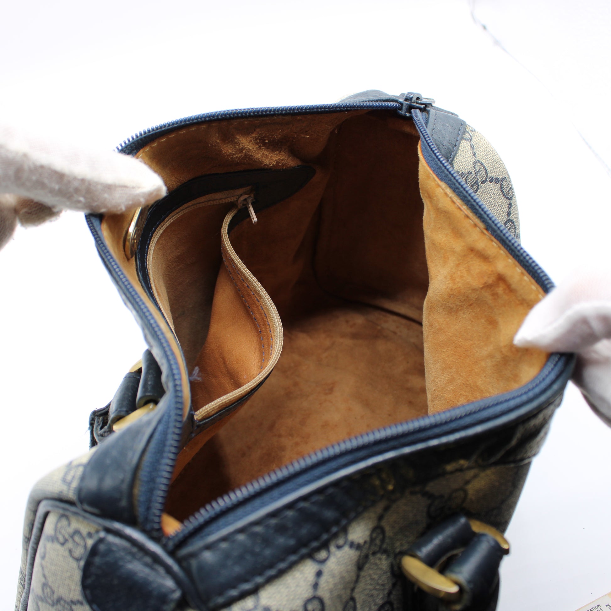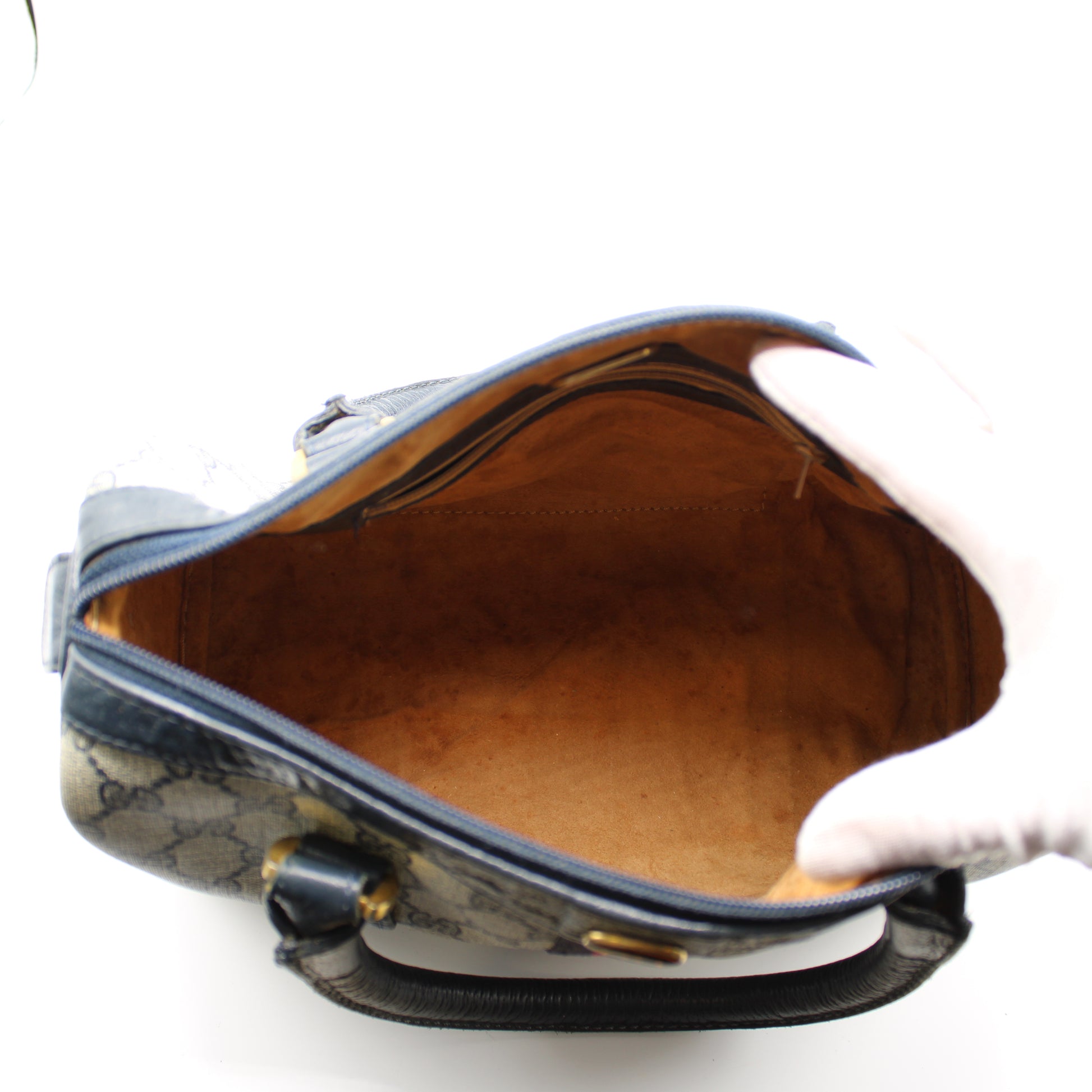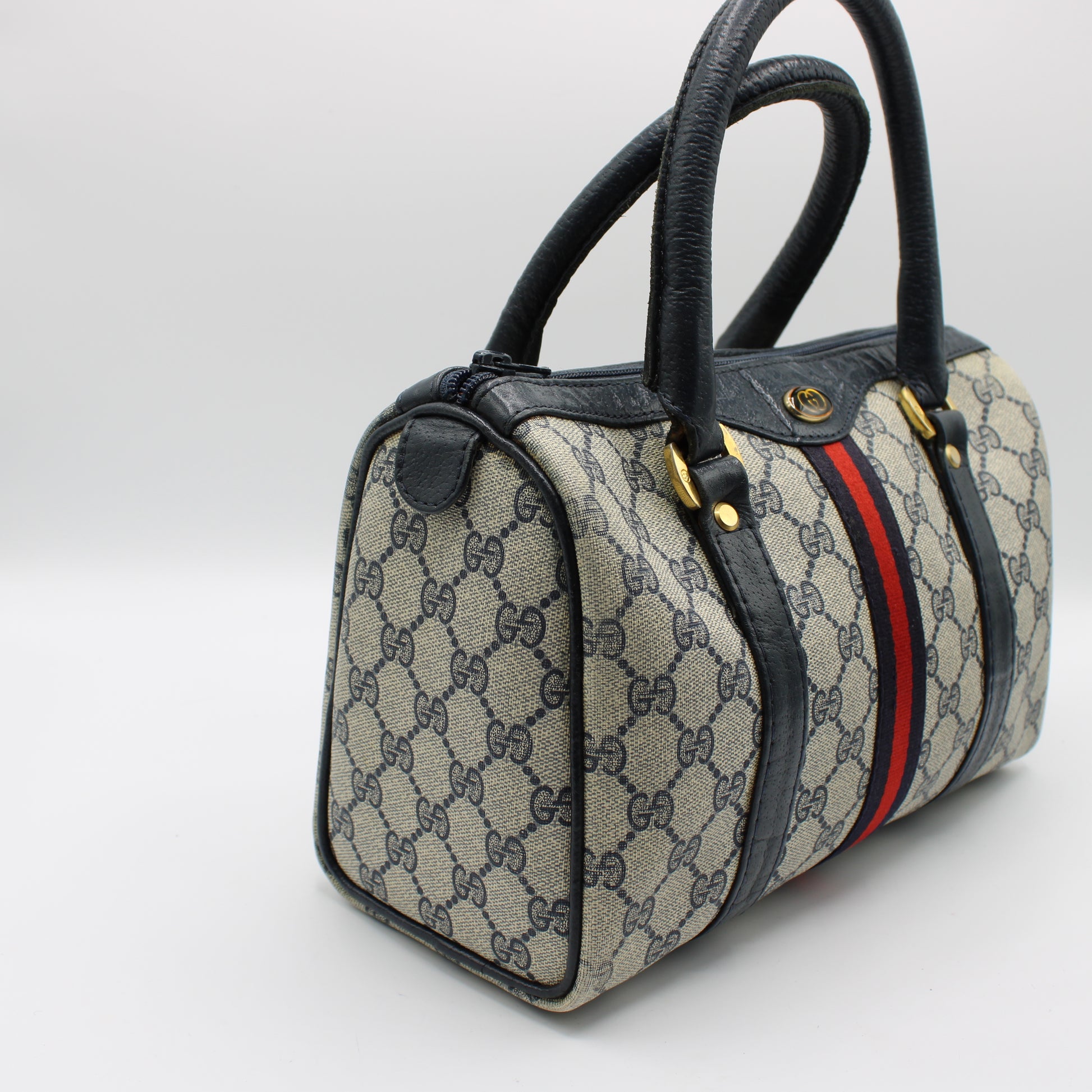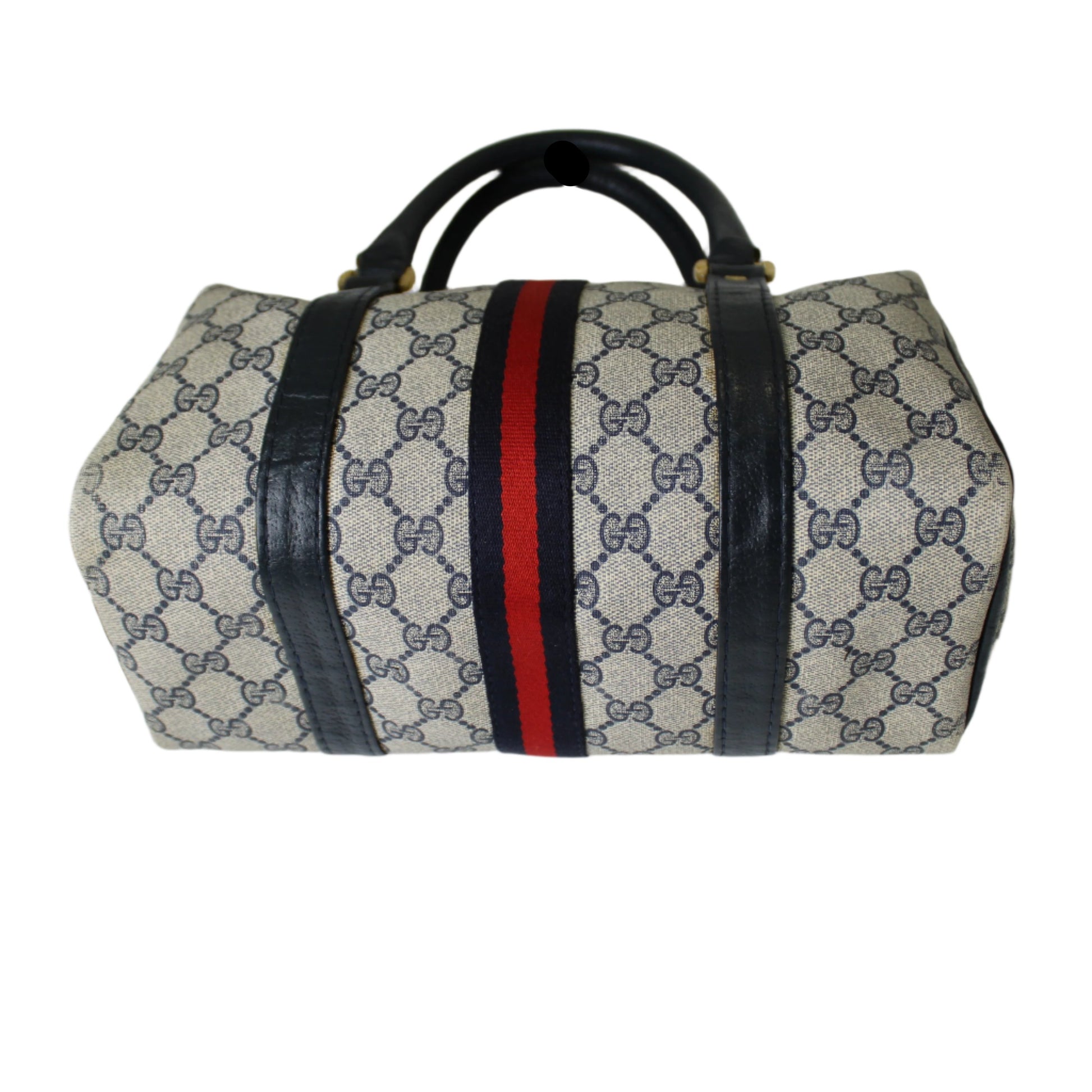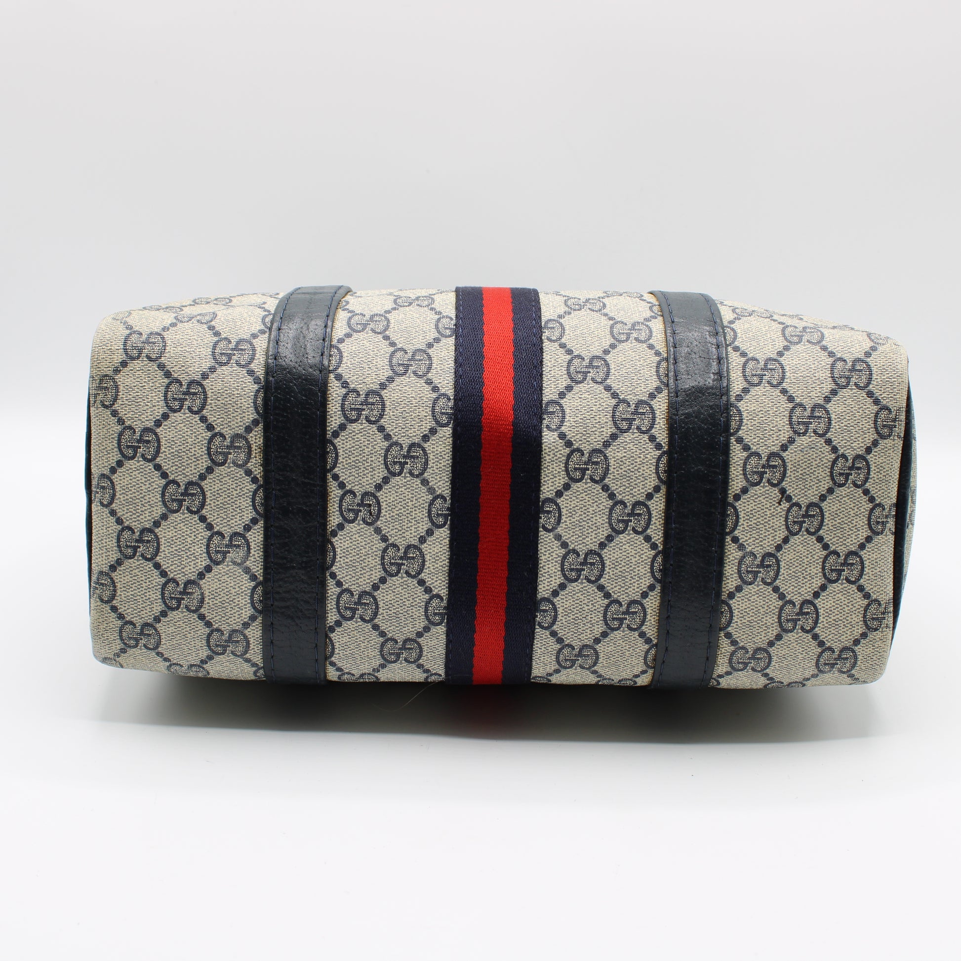 Gucci Ophidia Supreme Canvas Boston Bag Navy Leather Handles