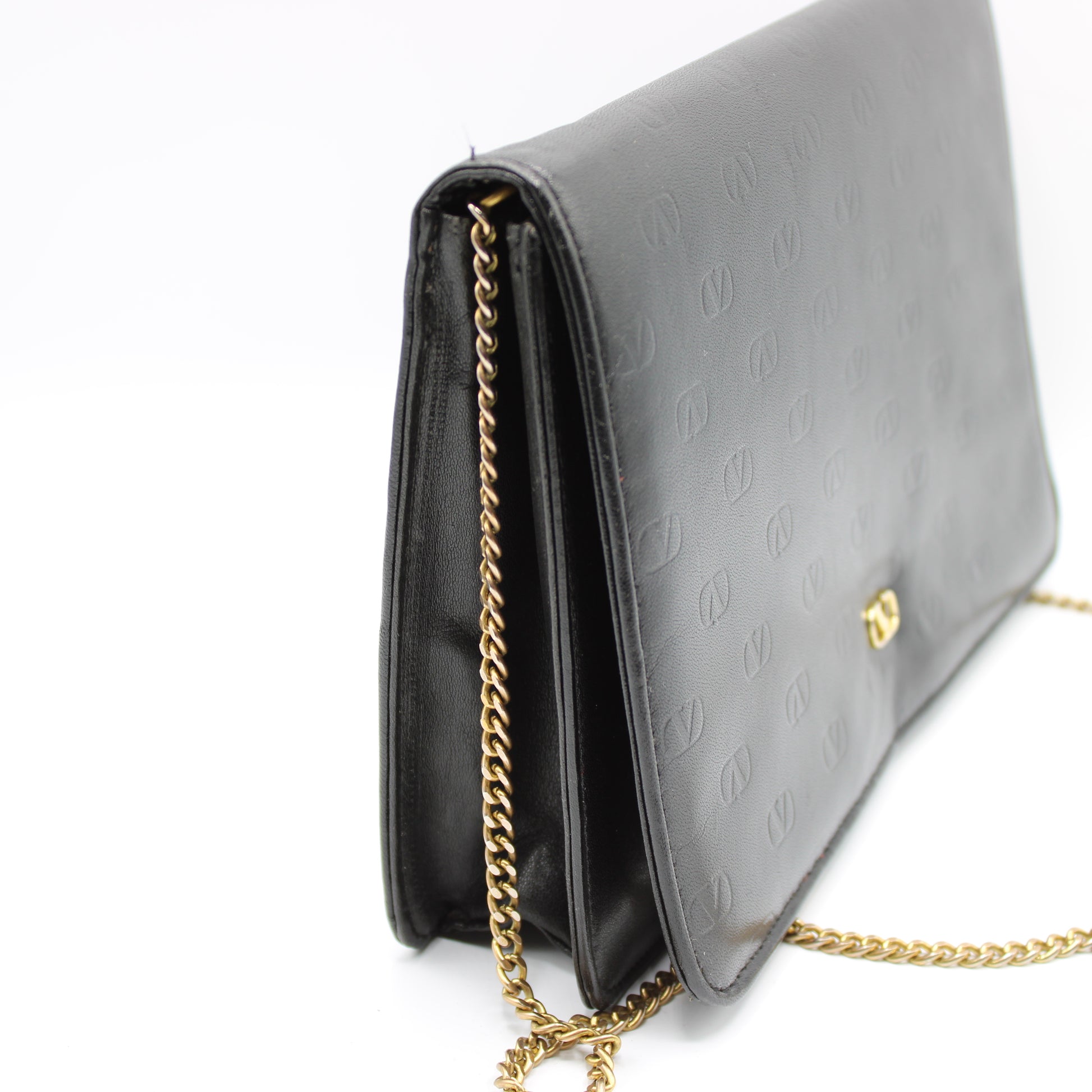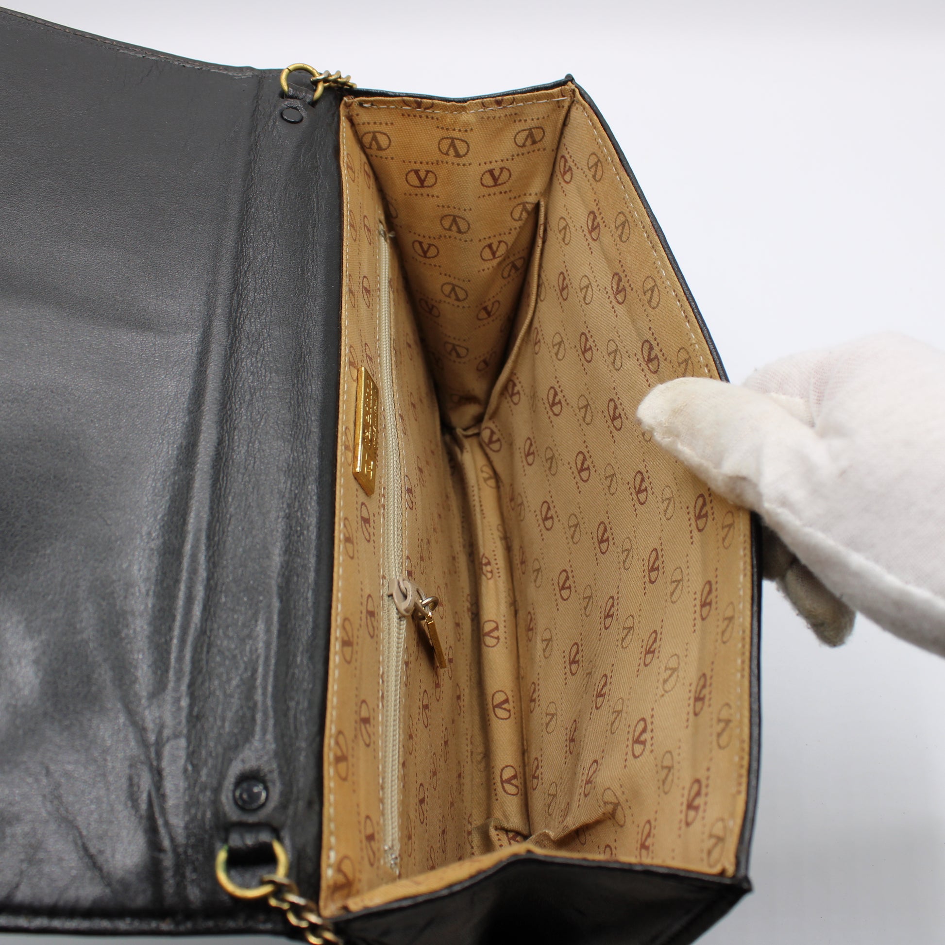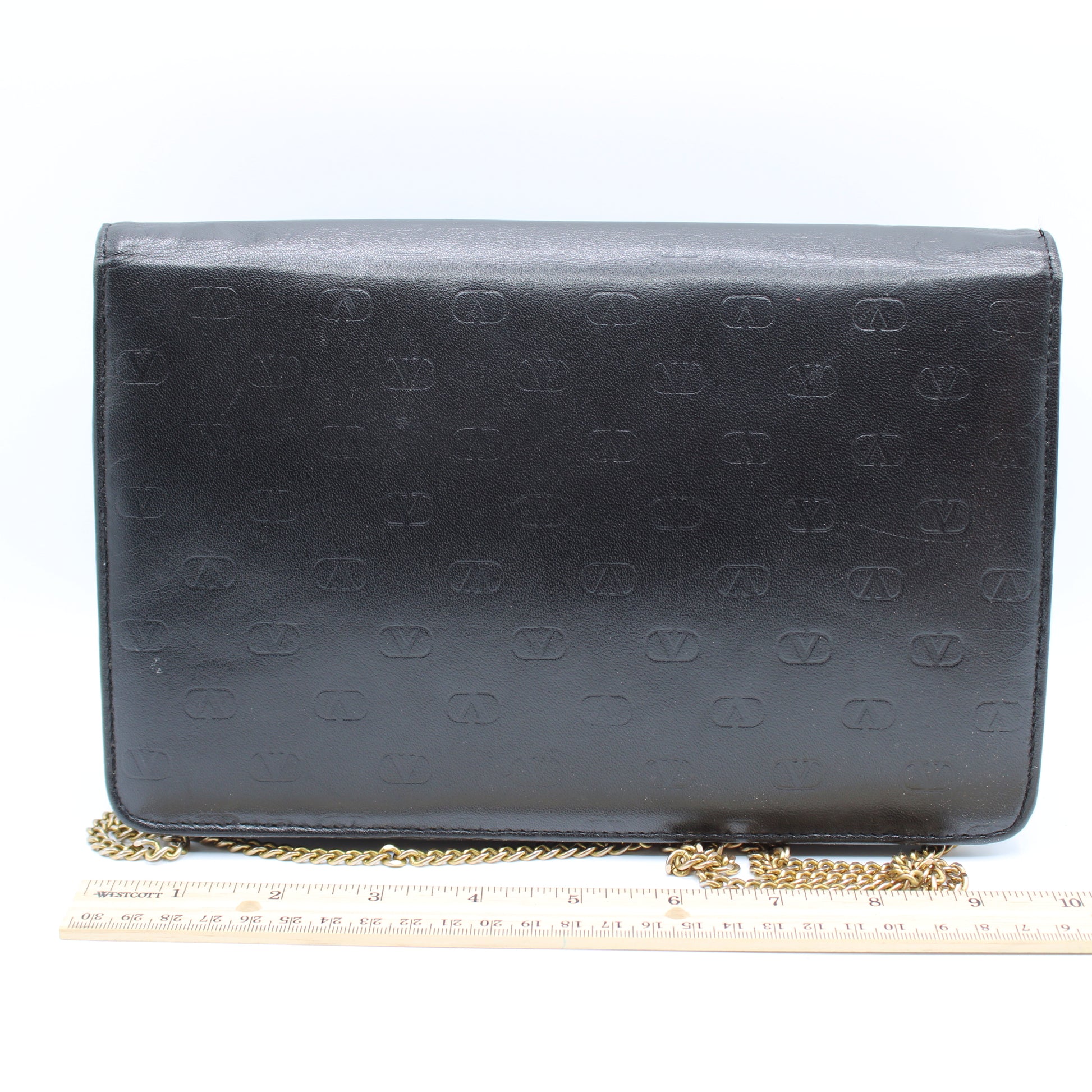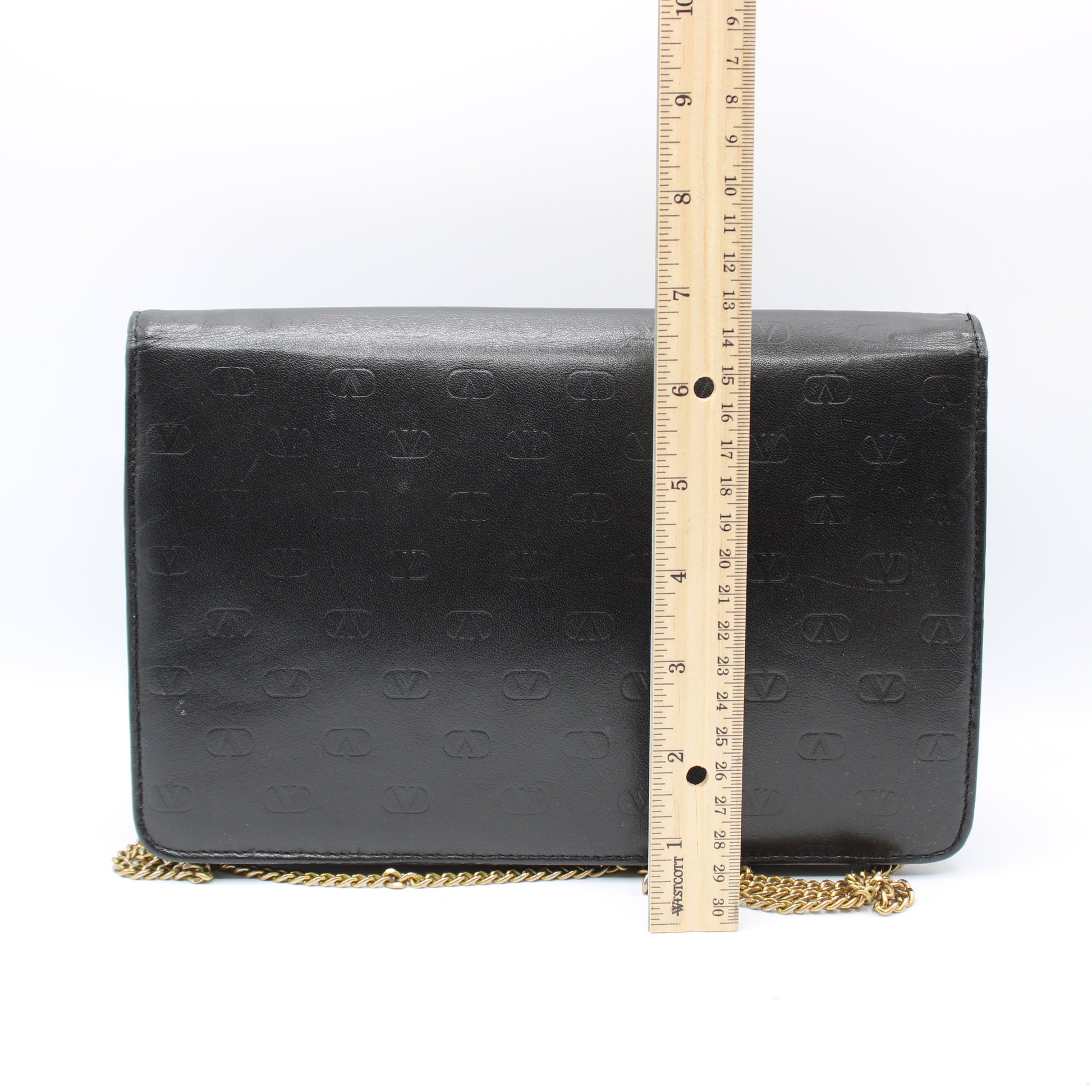 Valentino Garavani Black Lambskin Embossed Flap on Chain Crossbody Bag