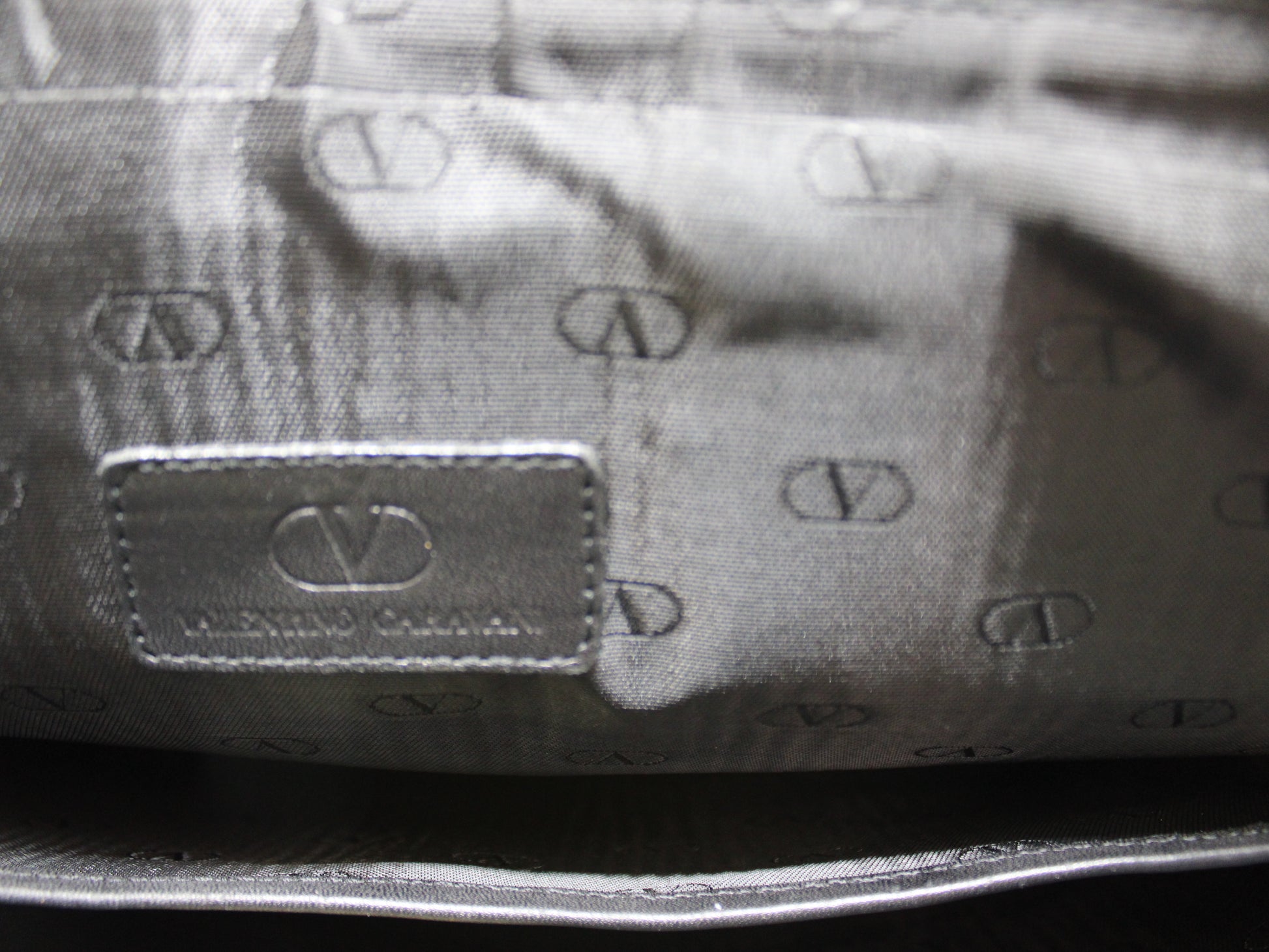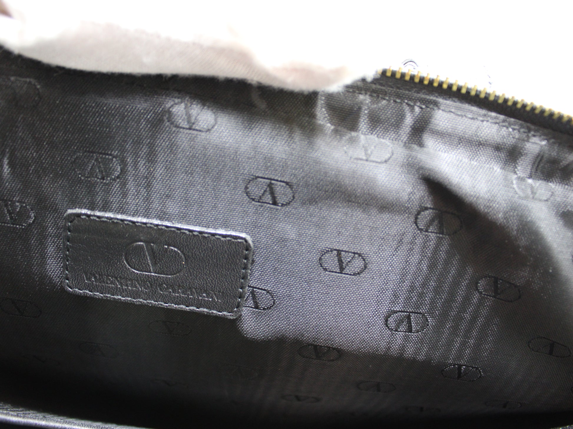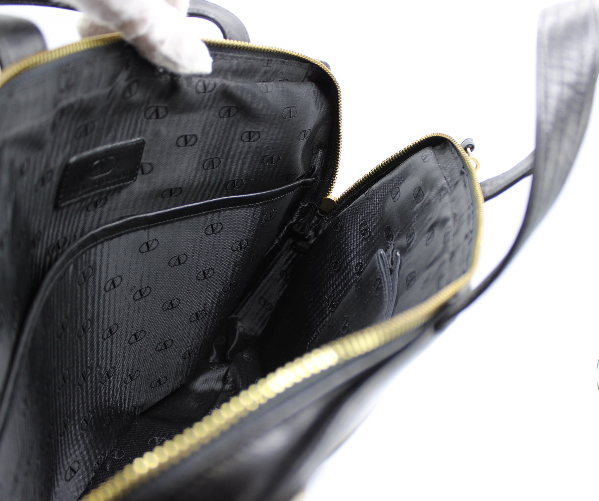 Internally, the briefcase is designed to keep your essentials organized and accessible, complemented by a versatile strap for comfortable shoulder wear. The golden accents bring a subtle opulence to the piece, balancing the bag's practicality with Valentino's luxurious aesthetic.
