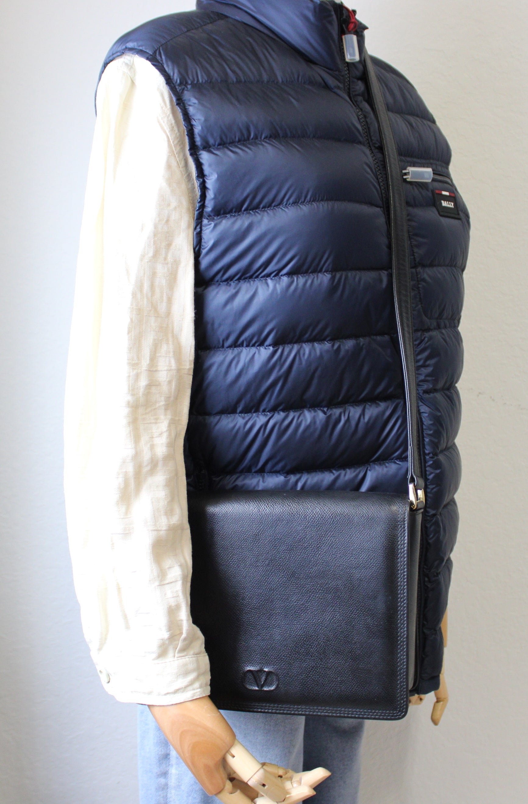 Valentino Garavani Black Leather Crossbody V Logo Bag Vintage