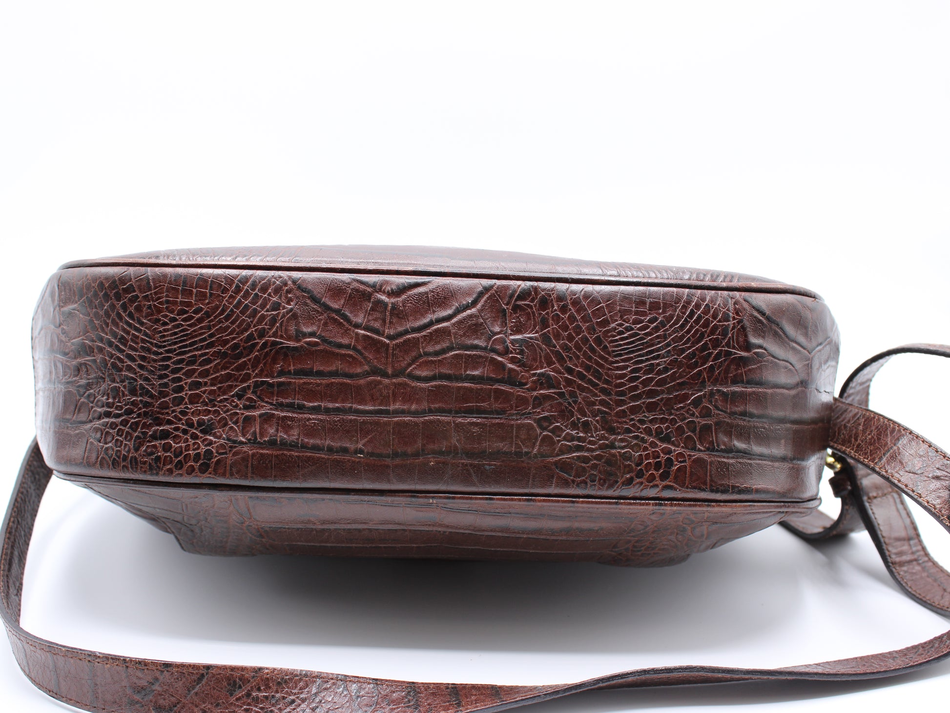 Valentino Garavani Crocodile Embossed Brown VSLING Leather Crossbody Bag