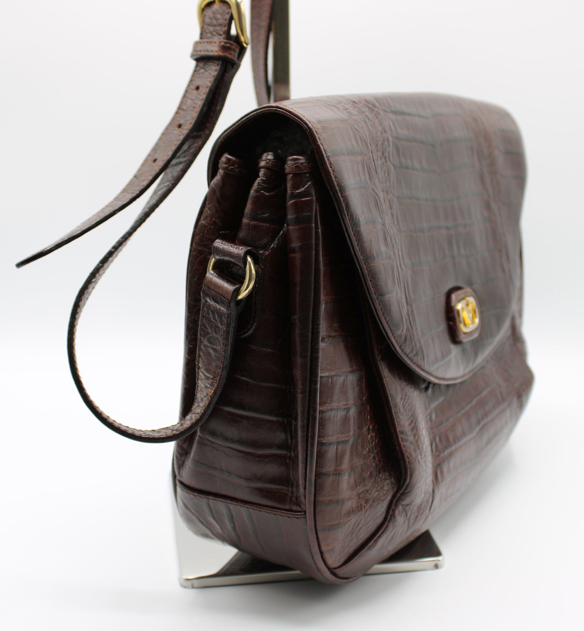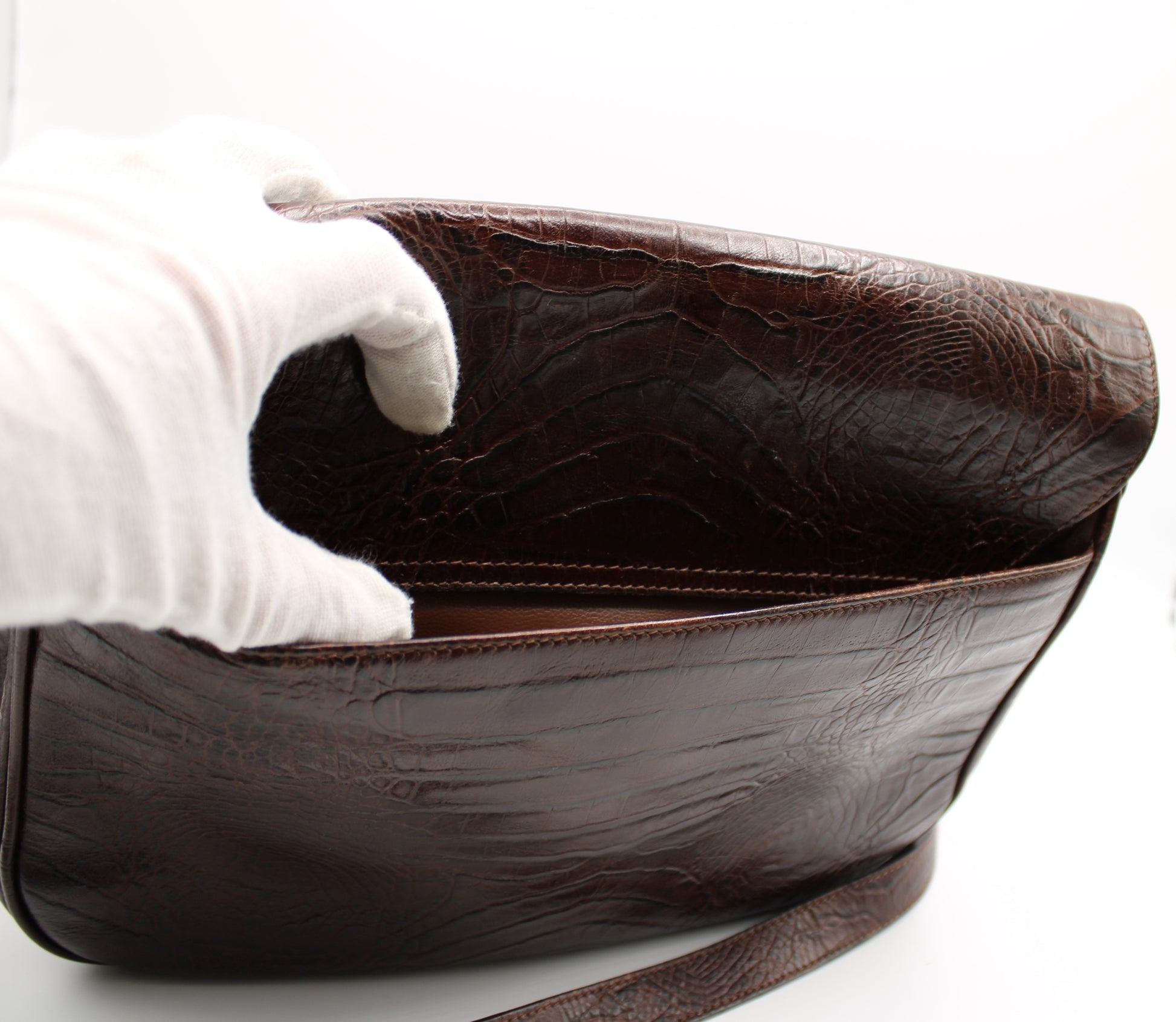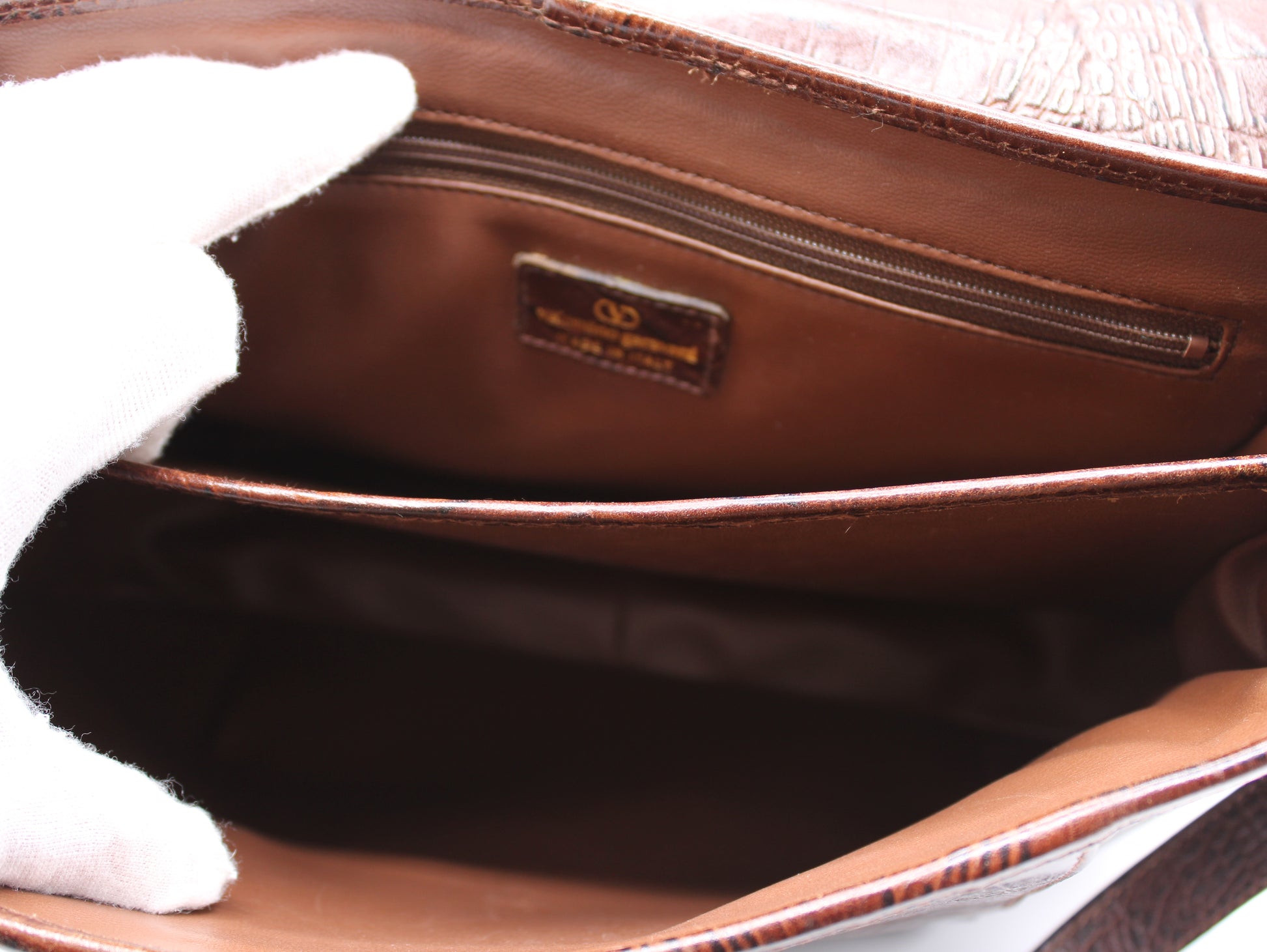 In very good condition, this Valentino Garavani bag shows minimal signs of wear, maintaining a clean and polished look both inside and out. It is a testament to the enduring quality and style inherent to the Valentino brand. Authenticity is assured with every item offered by Stefany Bags Shoes and More, and this crocodile-embossed leather crossbody bag is no exception. This piece is not just an accessory; it's an investment in timeless fashion and an emblem of sophisticated style.