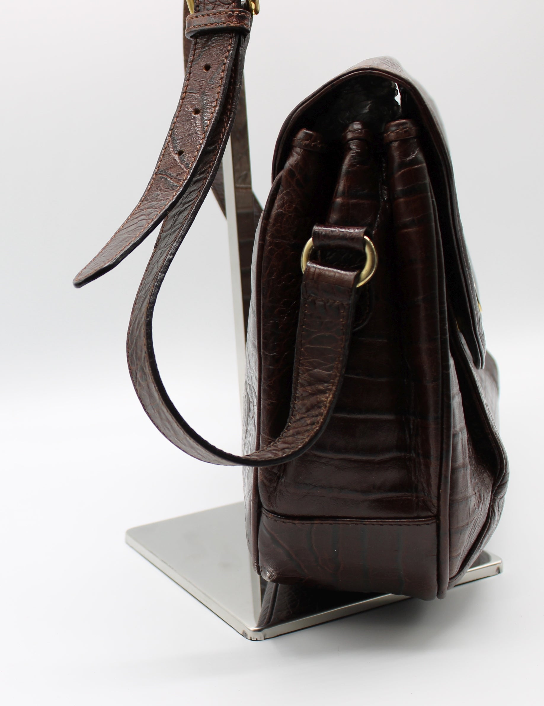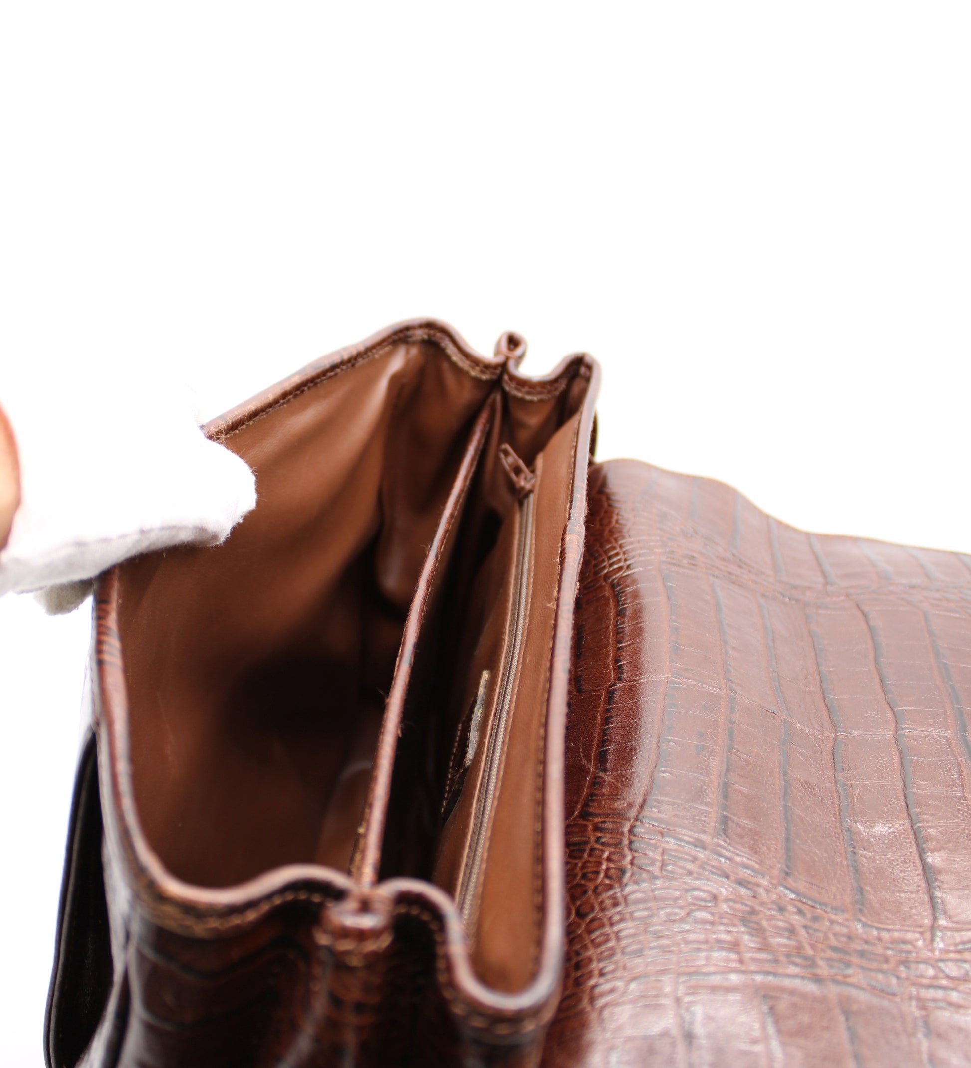 Stefany Bags Shoes and More is thrilled to feature the Valentino Garavani Crocodile-Embossed Leather Crossbody Bag, a perfect fusion of classic elegance and contemporary functionality. This Valentino Garavani creation is meticulously crafted from high-quality leather with a crocodile-embossed texture, offering both a tactile and visual experience of luxury. It presents a rich, deep brown hue, complemented by a gleaming gold logo clasp that signifies the brand's commitment to luxury and detail.