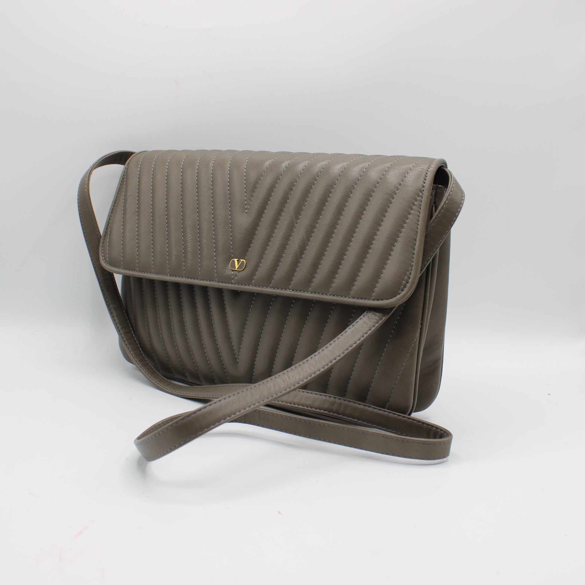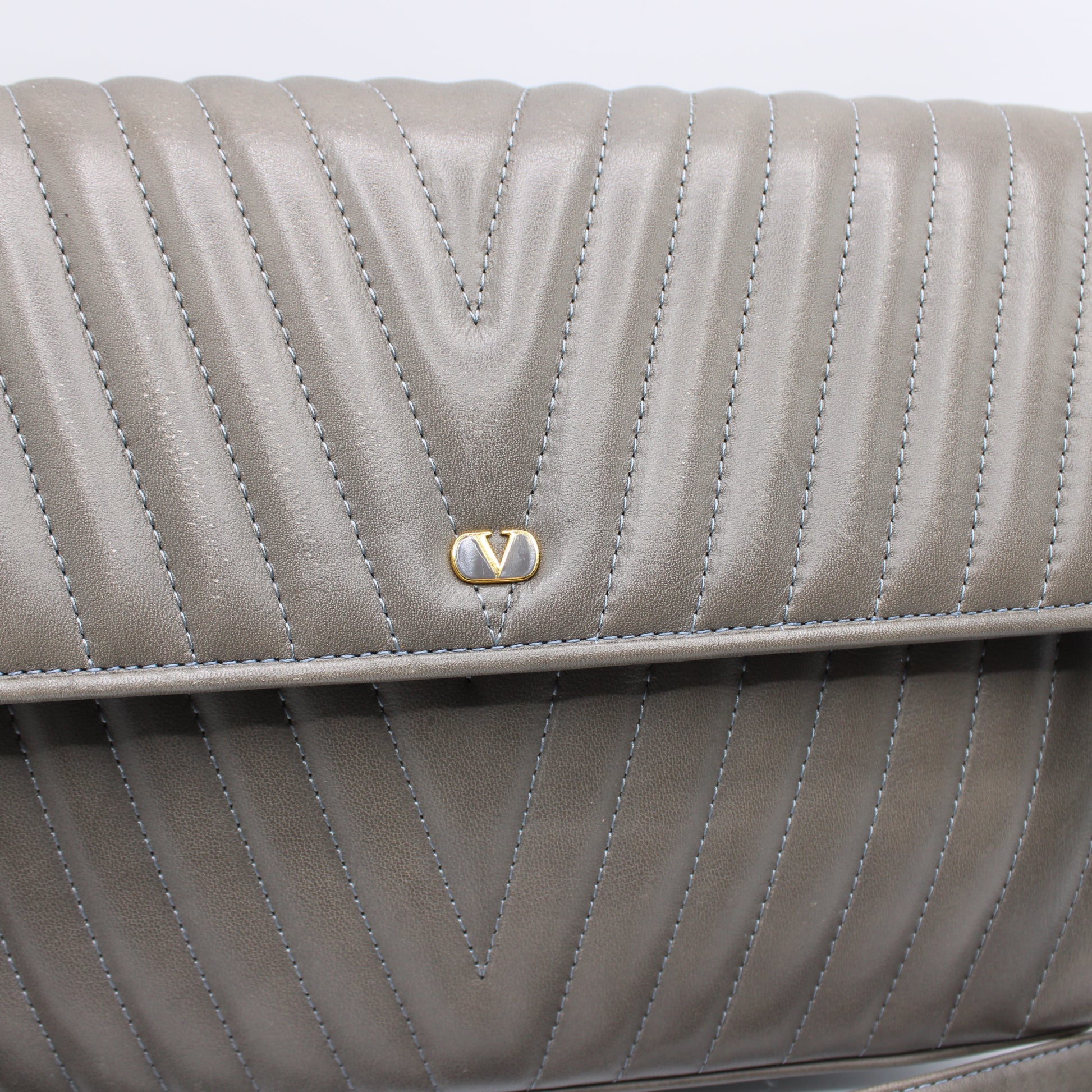 Valentino Garavani Grey Leather Chevron Flap Crossbody
