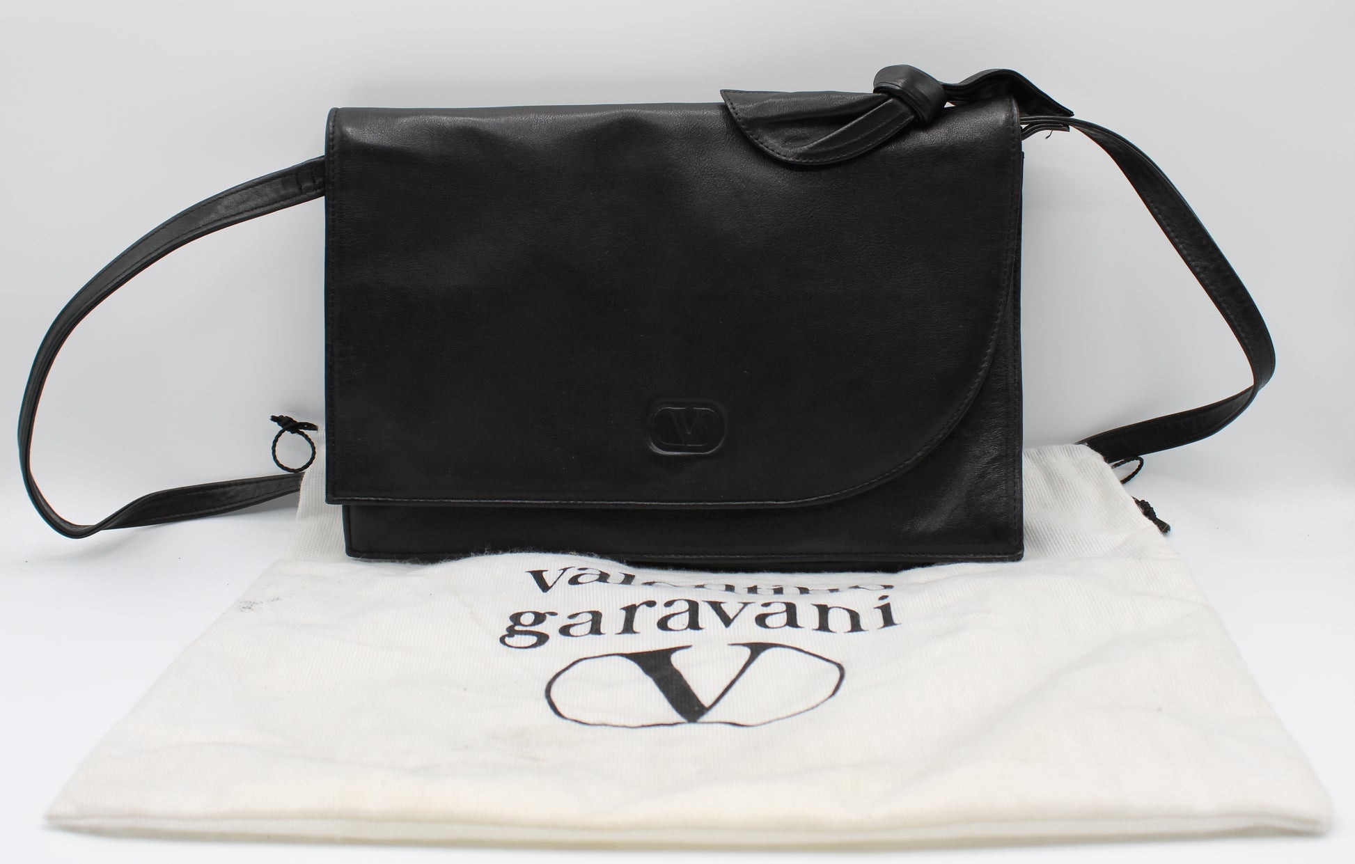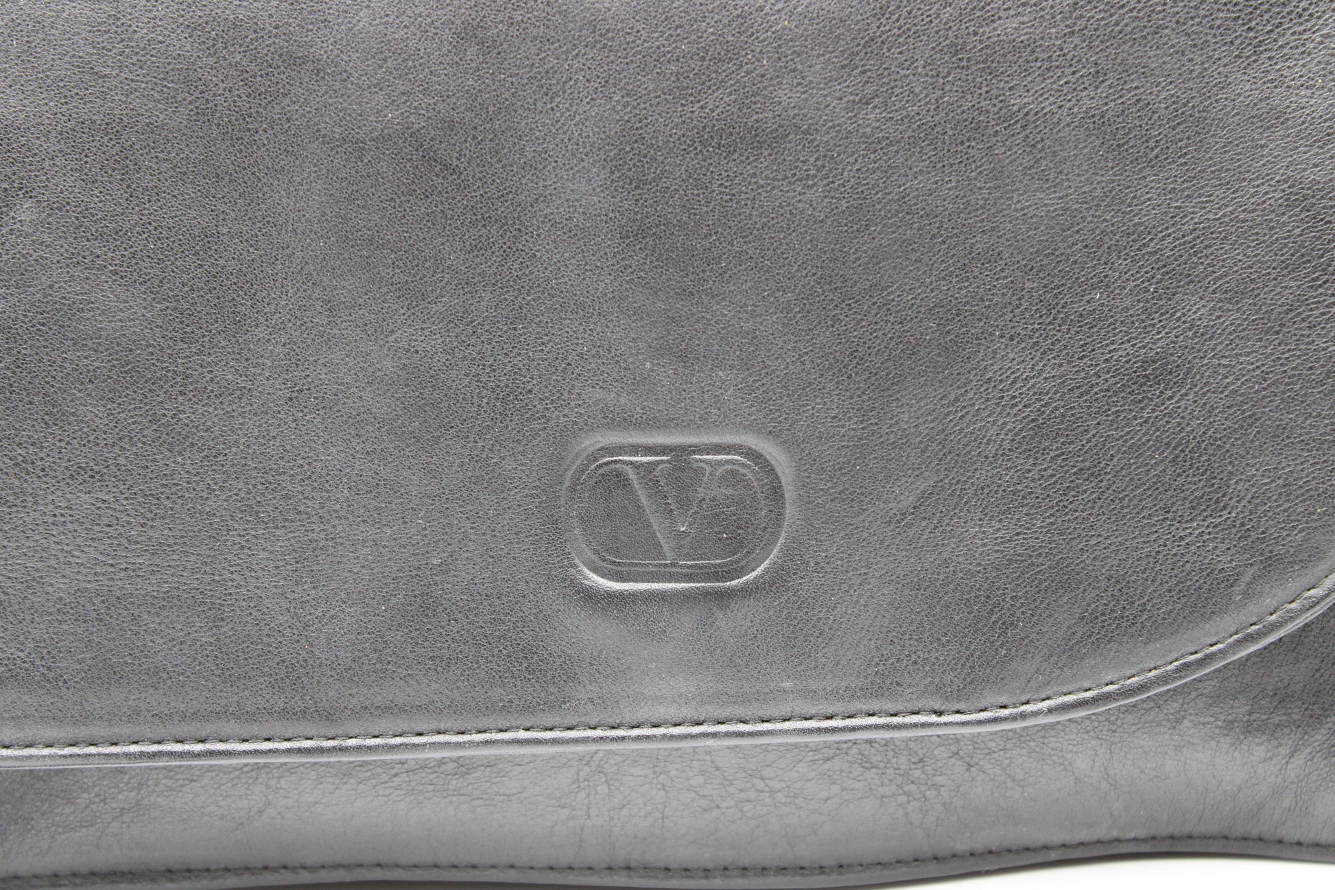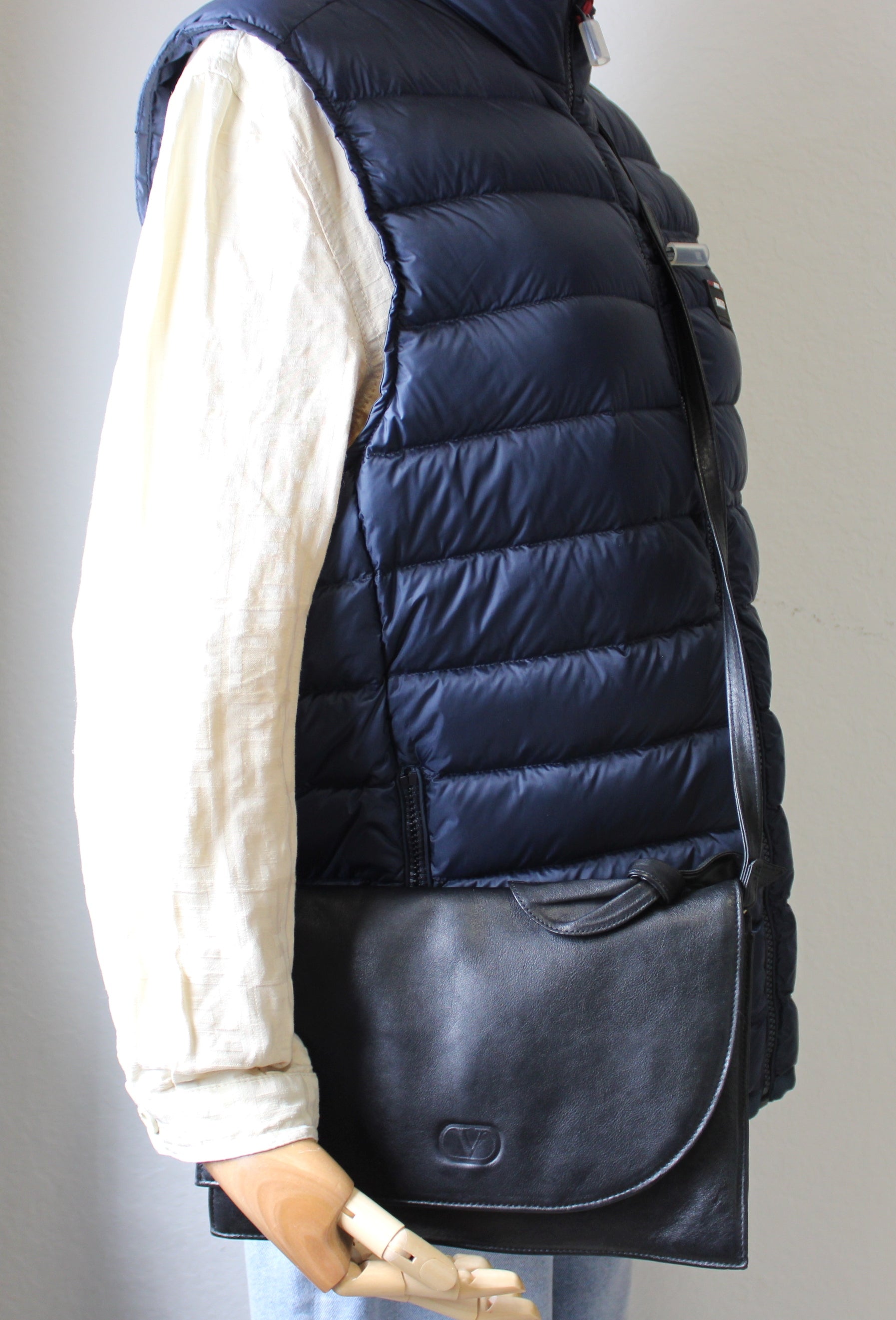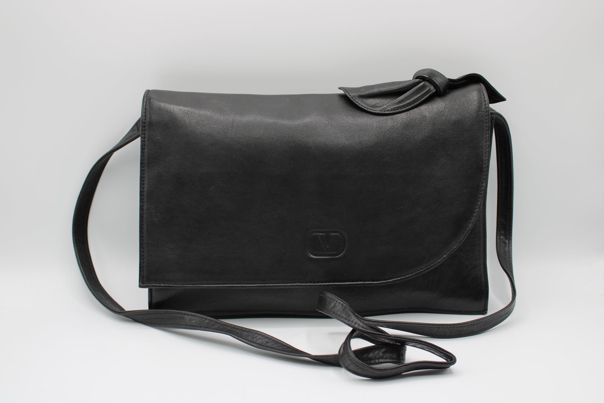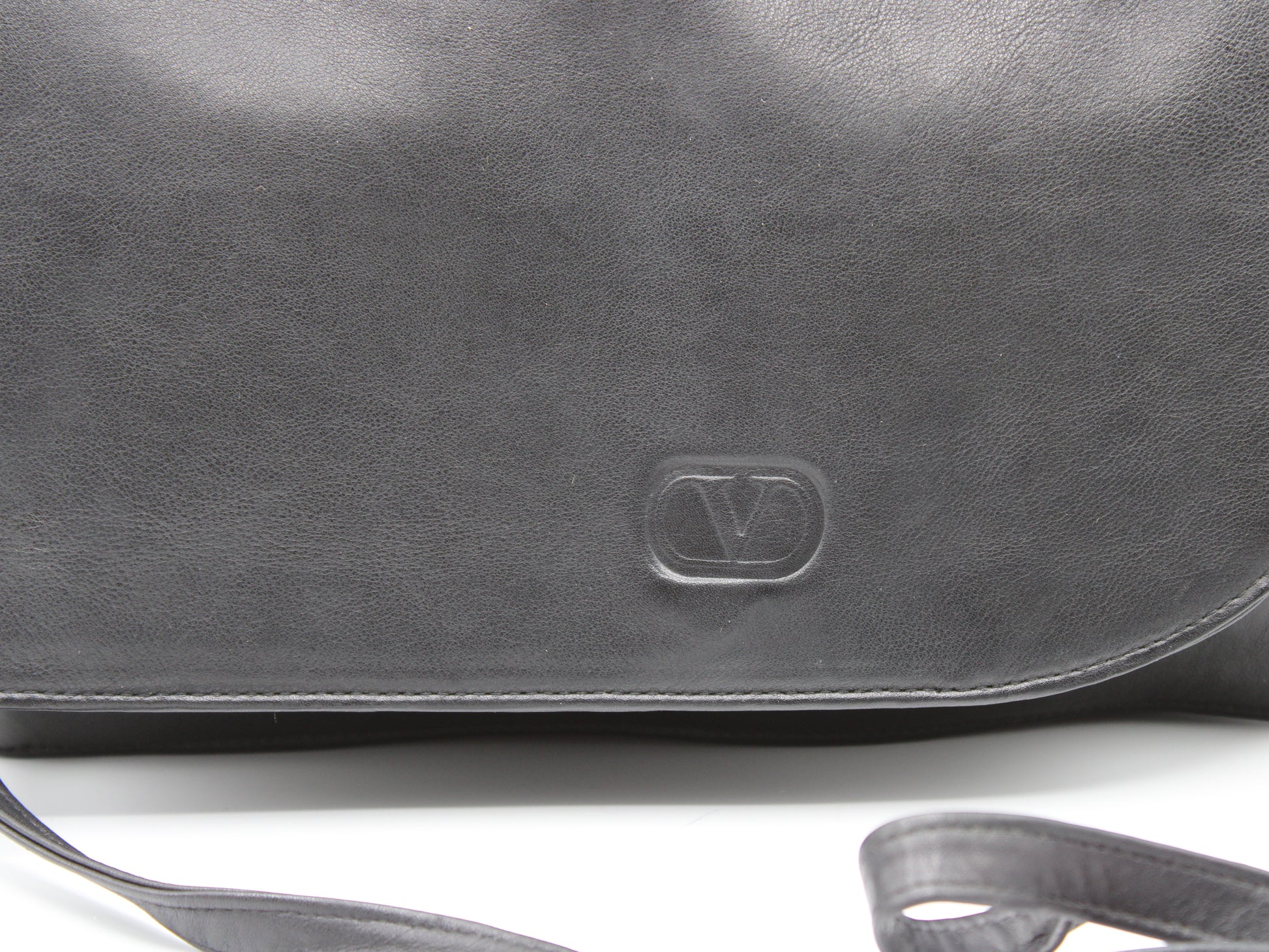 Valentino Garavani V Logo Black Leather Crossbody Bag Vintage