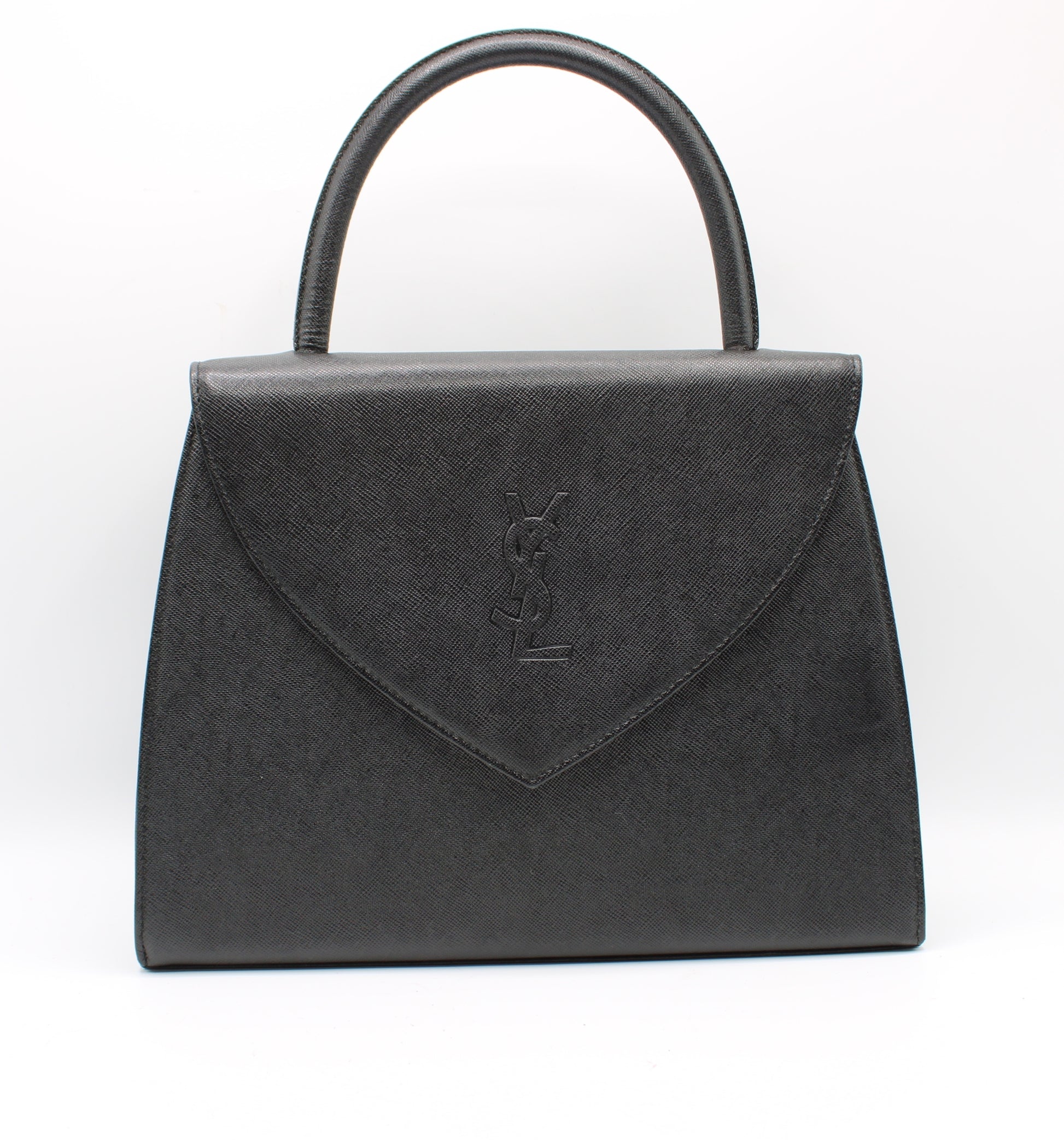 Stefany Bags Shoes and More proudly presents this authentic vintage Yves Saint Laurent black leather top handle bag, a timeless and elegant piece that embodies classic Parisian sophistication. Crafted from durable textured leather, this structured bag features a refined flap silhouette with an embossed YSL logo on the front, offering understated luxury that never goes out of style. Its clean lines and versatile black color make it an ideal everyday statement bag or a polished companion for work and special occasions. This piece reflects the enduring appeal of authentic vintage Yves Saint Laurent bags, highly sought after by collectors and fashion lovers alike, especially those searching for vintage bags in Boston and available in Boston.
