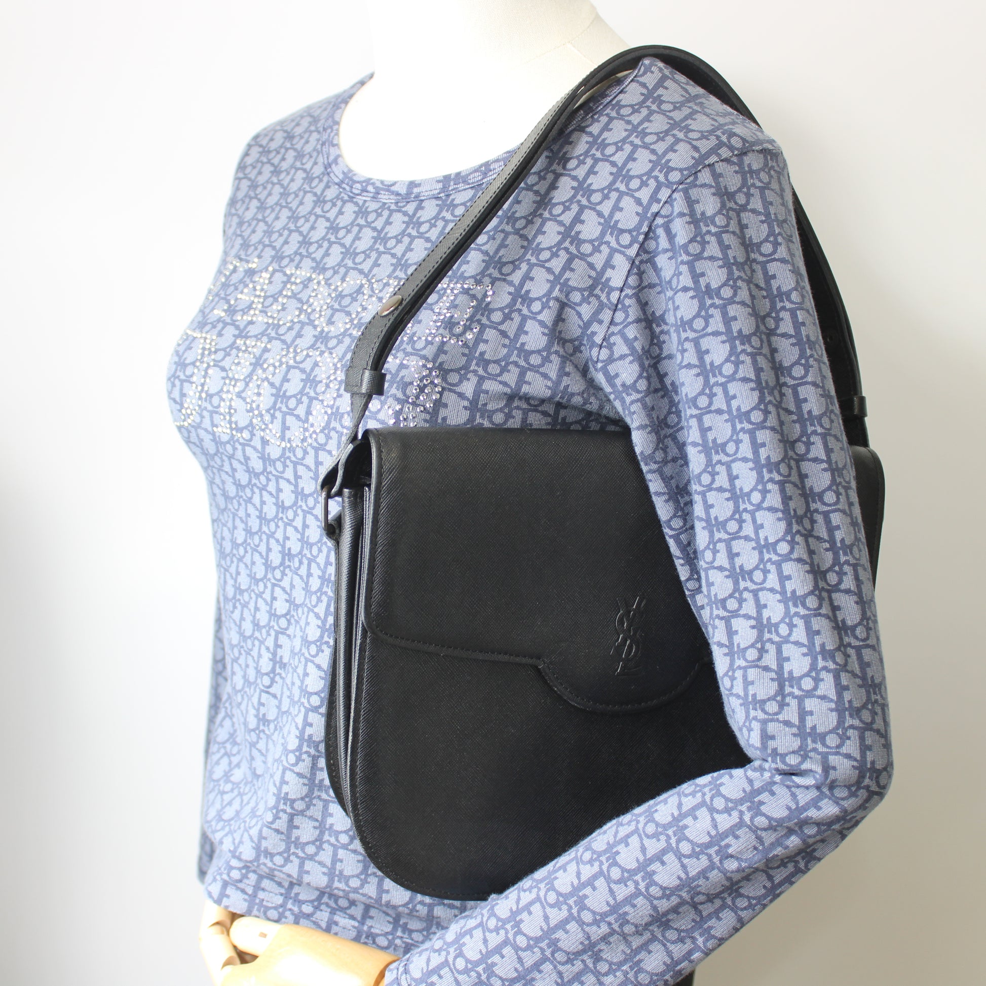 Measuring approximately 10 x 8 inches, this shoulder bag is ideal for everyday essentials while maintaining a refined silhouette. Its timeless style makes it a perfect choice for collectors of authentic vintage Yves Saint Laurent bags in Boston or for those seeking a versatile, heritage piece.