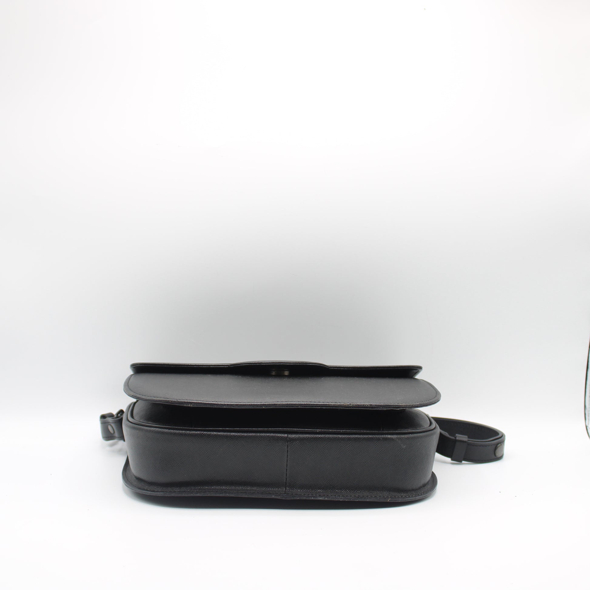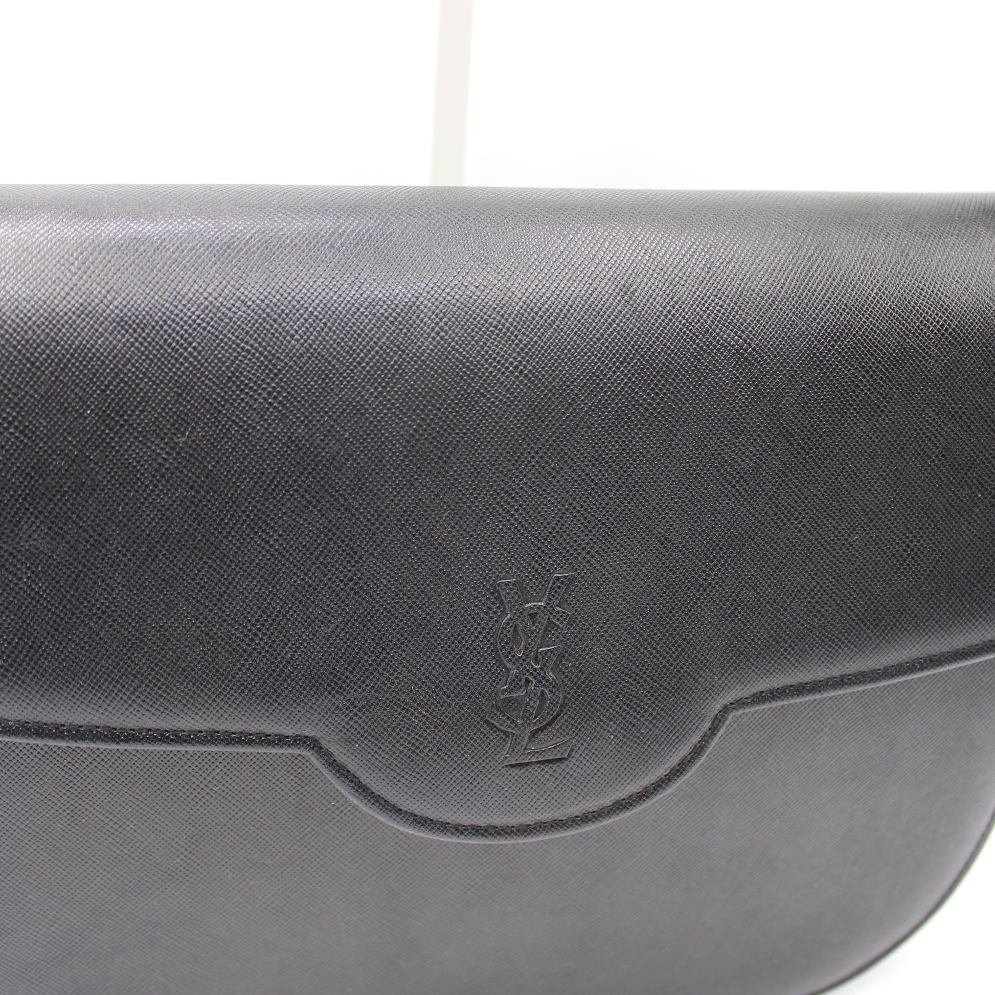 Yves Saint Laurent Black Textured Leather Flap Shoulder Bag