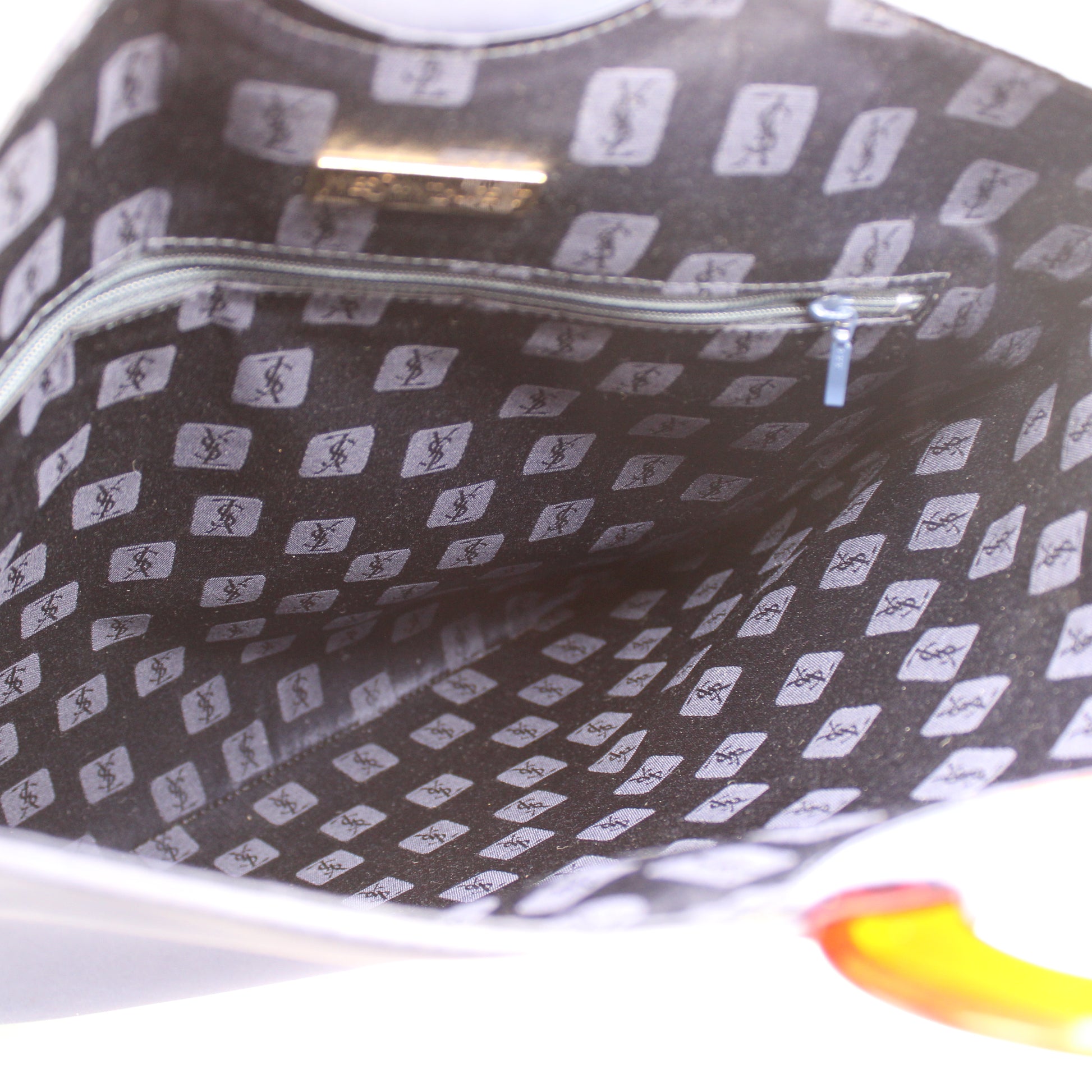 This authentic vintage Yves Saint Laurent handbag measures approximately 15 inches wide by 14 inches high, offering ample space for daily essentials while maintaining a sleek silhouette. Perfect for everyday wear or as a standout statement piece, this bag is ideal for shoppers searching for authentic vintage Yves Saint Laurent bags and unique vintage bags in Boston.