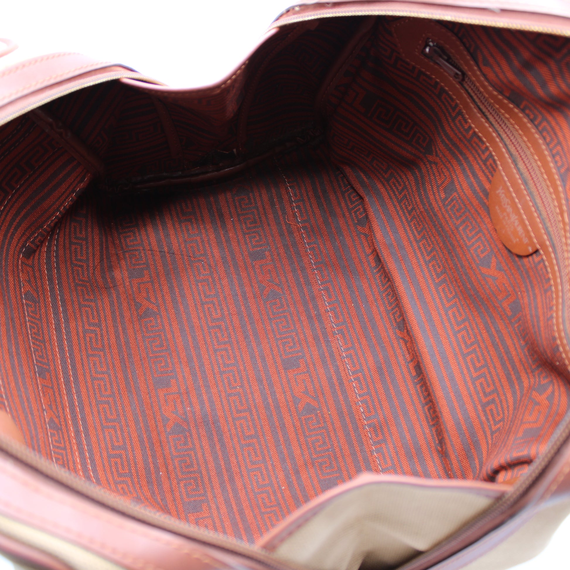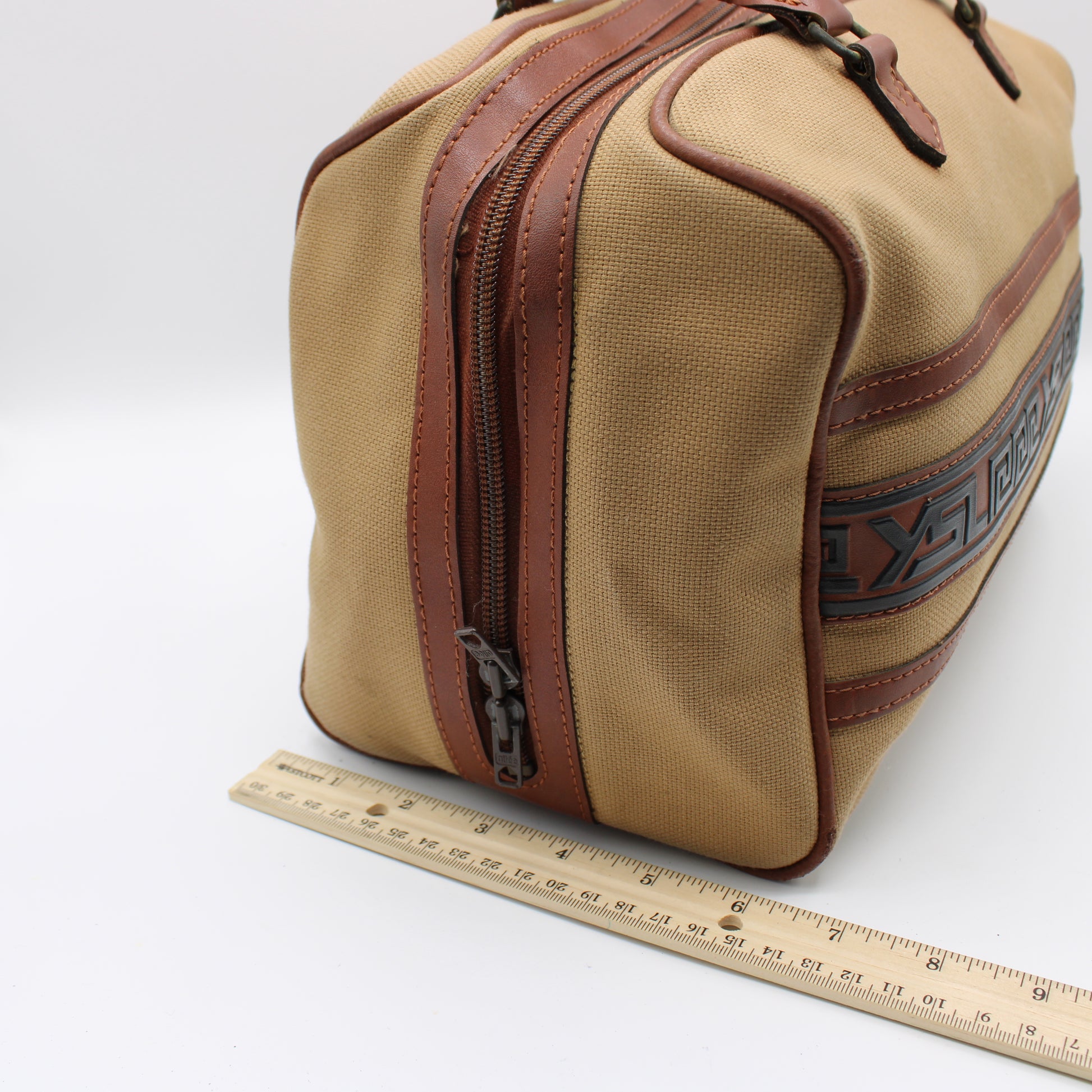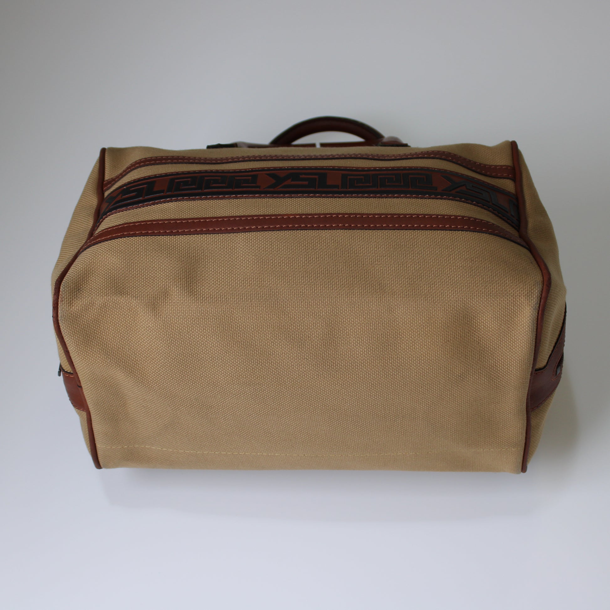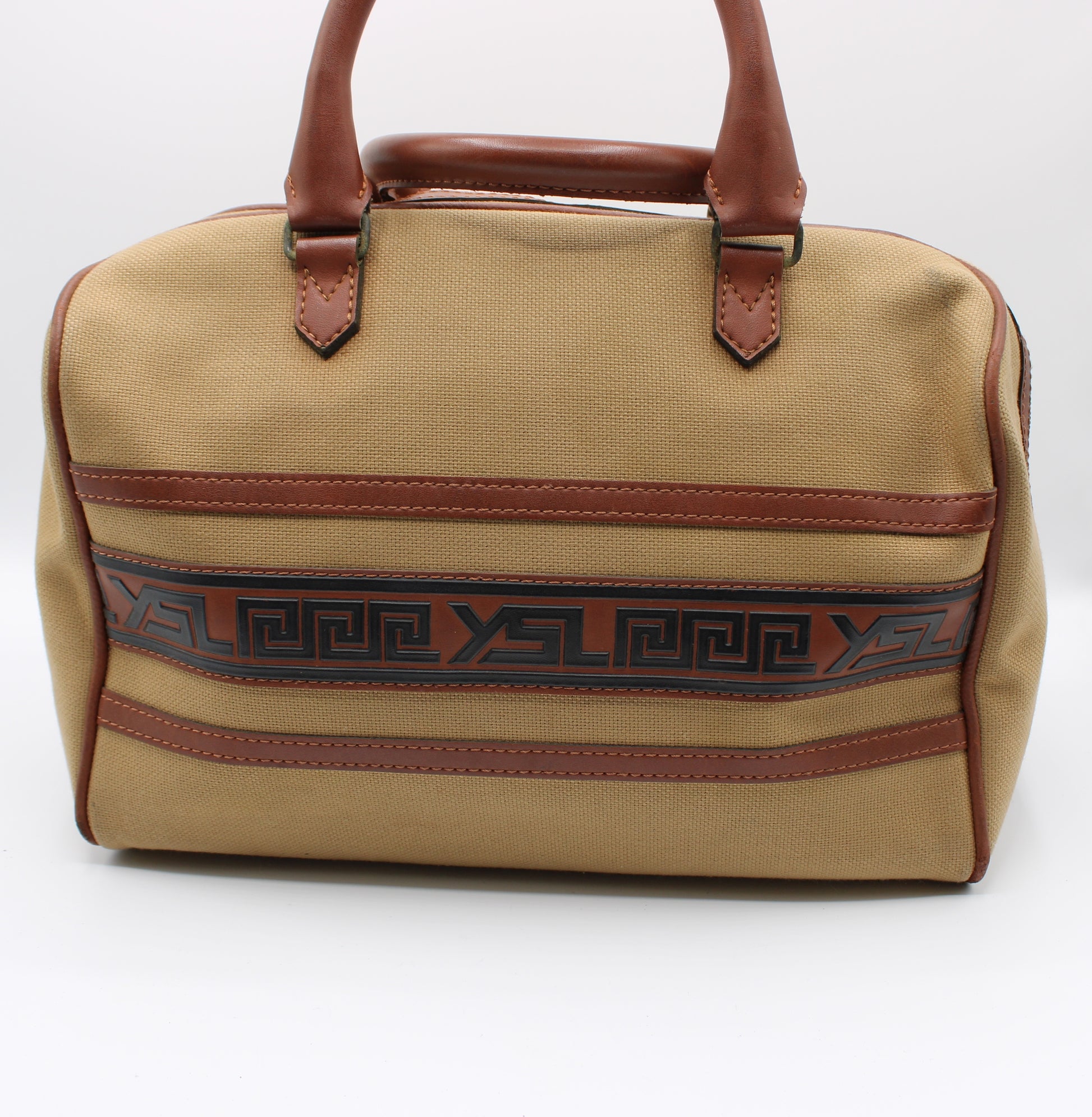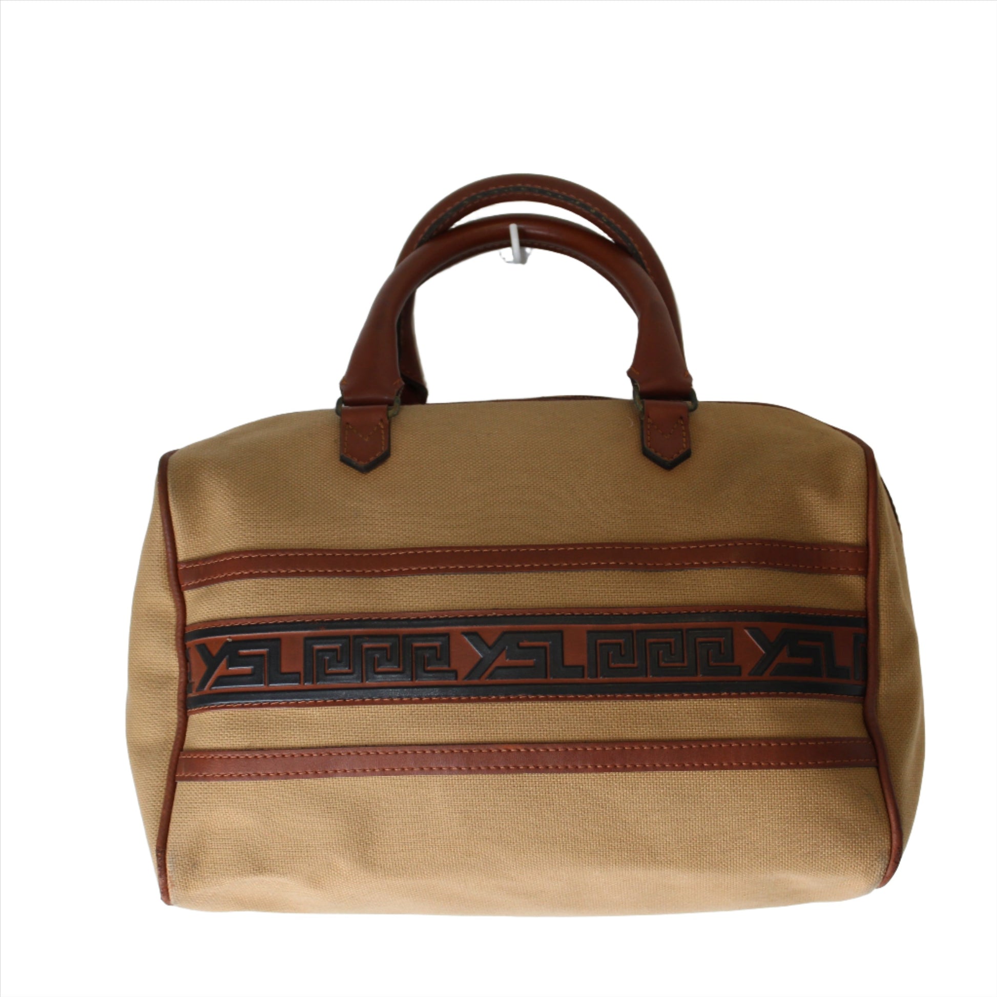 Yves Saint Laurent Tan YSL Canvas Leather Trim Boston Bag